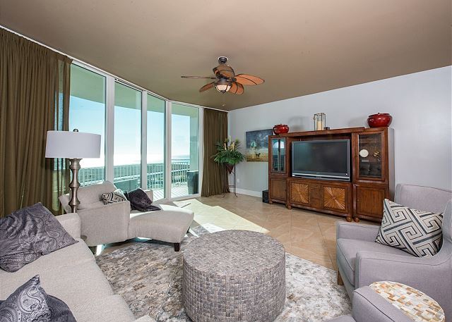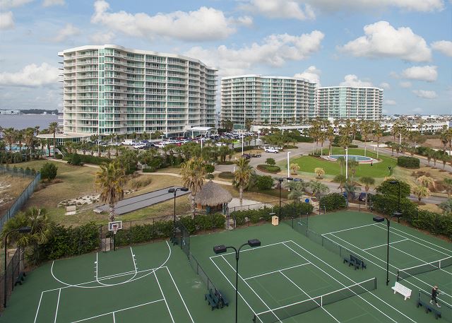 "Yay! Thank you, Lori, for the review! Caribe C, PH14 offers one of the best views that we have found for watching the beautiful sunsets over the Perdido Pass. We love that there are so many activities right there in the complex! There is a shuttle that you can use to take you to the beach and back. That makes beach access much easier. Come on back down to make more memories with your family!"