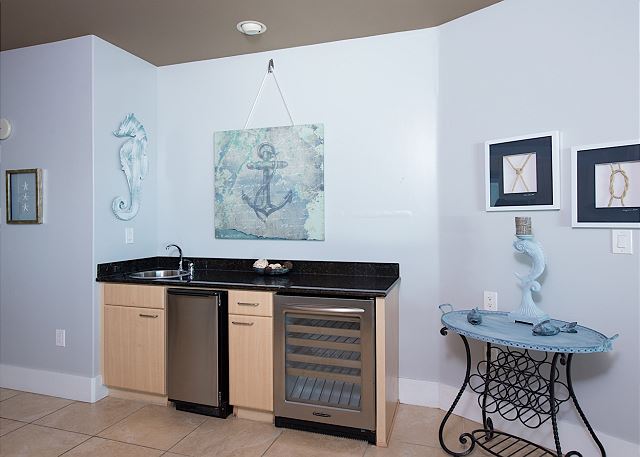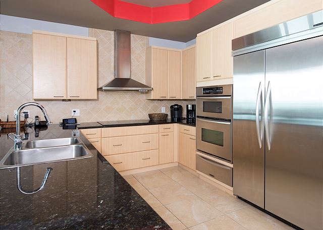 - Fully equipped kitchen with stainless steel appliances, granite countertops, Keurig, and wet bar