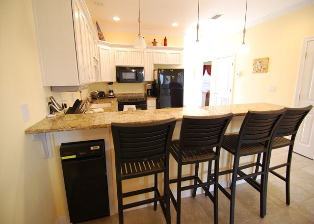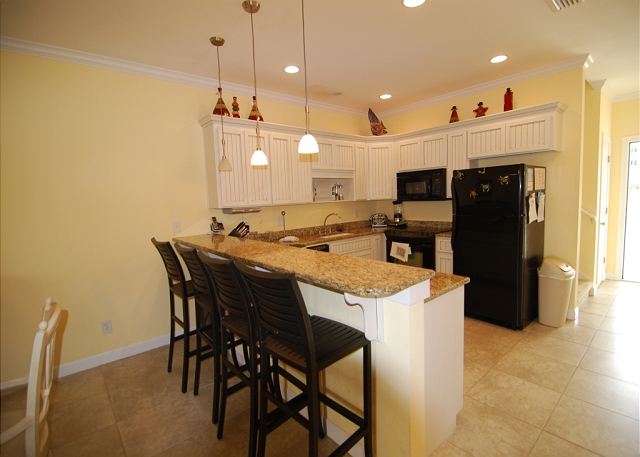 "This rental was well equipped and even had some things we weren't expecting (especially in the kitchen). A recent lightening storm had knocked the TV's out and they were replacing them when we arrived. They also let us borrow a charcoal grill for one of our evenings from the clubhouse. There were 4 families and a single in our party and we all managed to have plenty of space for everyone. The beds were comfortable and the short walk to the beach was perfect for coming and going with little ones. Everyone loved the pool as well. "