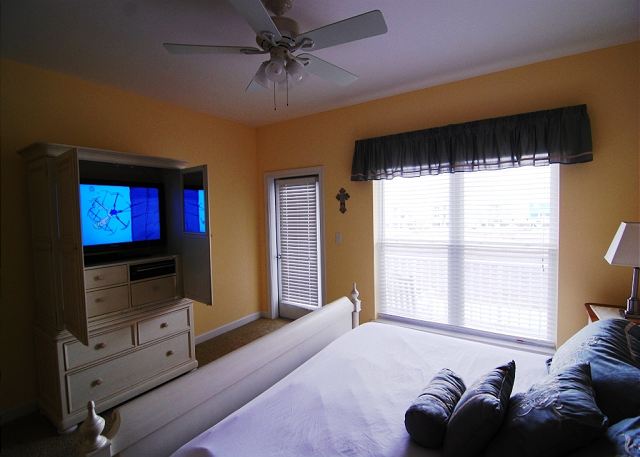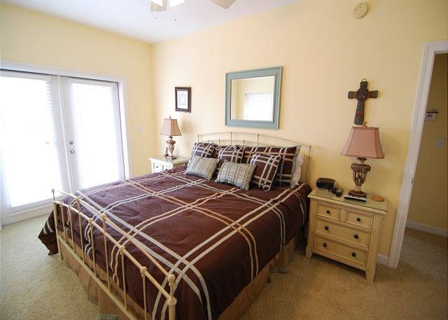 THIRD FLOOR: Private retreat with king bed, flat-screen TV, extra sink, balcony with Gulf views