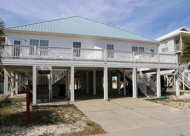 "Great, but short trip (5 days) with grandchildren! Big plus - "home allowed dogs" - who are also our "pet-children." Home was nice, clean & right next door to home owners' shared pool (pool okay, not great). Was a short walk to beach & the offered "optional/additional cost" beach rental 'tent & 4 chairs' set-up was great & eliminated lugging items back & forth to beach. Only downside or rental (which we were well aware of when we rented) was the distance down Fort Morgan Road (almost to where ended at the Fort & ferry launch), & driving time to restaurants, shopping, Gulf Shores, etc. We will definitely consider renting the home again because of reasonable cost & since it is 1 of few places where you can bring pets & they are allowed on the beach, but grandchildren will probably want something closer to activities. "