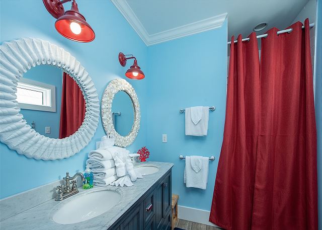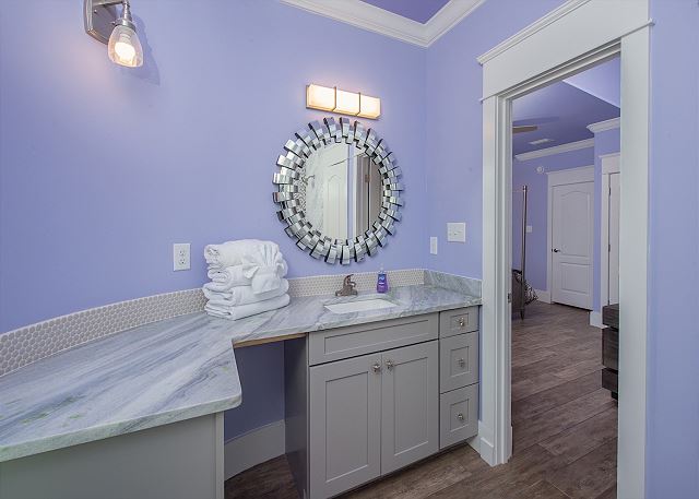 The one downside: the third floor bedroom across from the master (the violet room) did not have a functioning bathroom - the door was locked, and when we opened it the shower was under repair. This is not a surprise you want to have when you arrive on vacation, and I wish it had been communicated to us prior to our arrival. Also, the outside patio leading to the beach was a bit in disarray. There was construction material and debris on the ground, and it didn't reflect the true beauty of the home. "