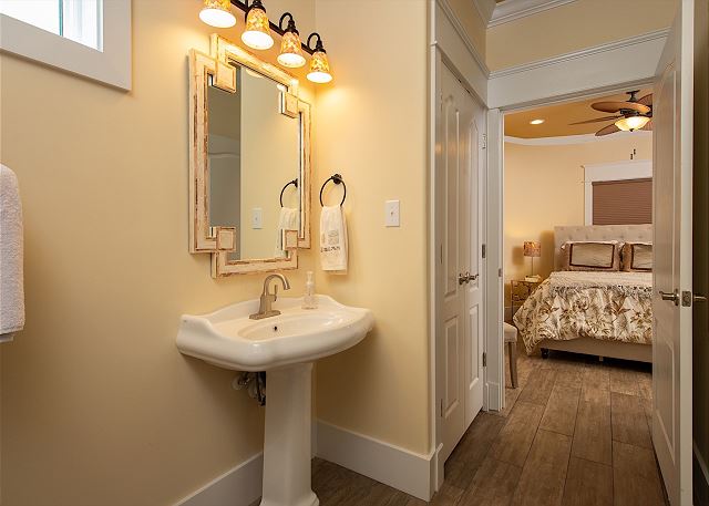 "Thank you for the review of your stay in this fabulous home! I apologize you were not contacted before your arrival about the bathroom. We tried to notify everyone. We didn't want to cancel anyone's vacation if we didn't have to, and we were hoping 1 out of 7 bathrooms being repaired wouldn't be a cause to cancel someone's reservation. Our construction crews have been working non-stop down here to try to complete the repairs from the damage hurricane Sally left behind. We have all worked diligently to get repairs completed so that we could welcome people back to our beautiful beaches. And, unfortunately, some of the debris from the construction occurring on the home directly to the east blows into our garage. Dang it! With the year that we just had, we are ready to welcome people back! All the repairs to this house including the bathroom was fixed by April 15st! "