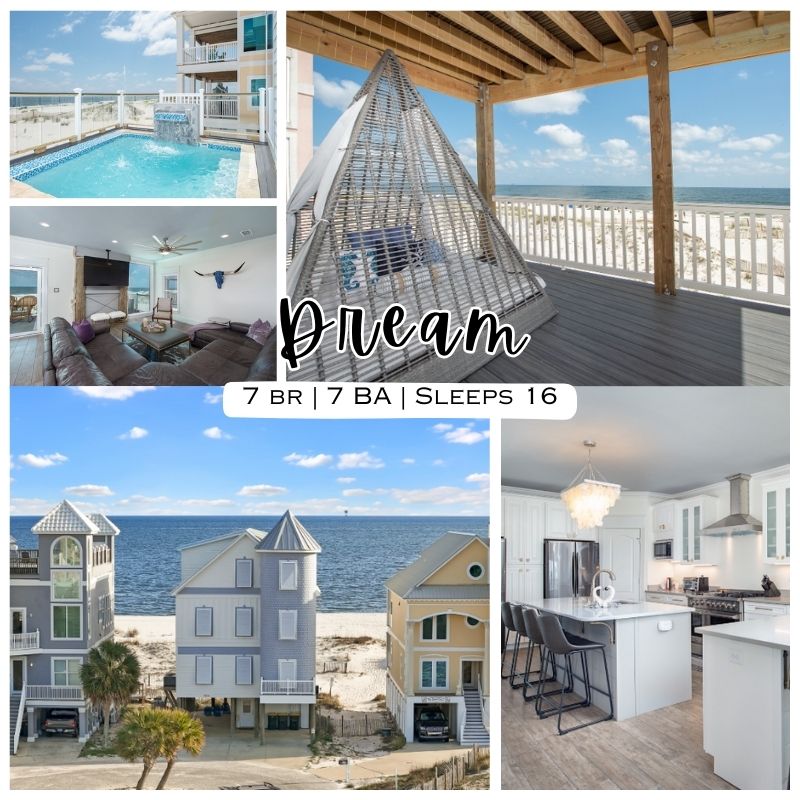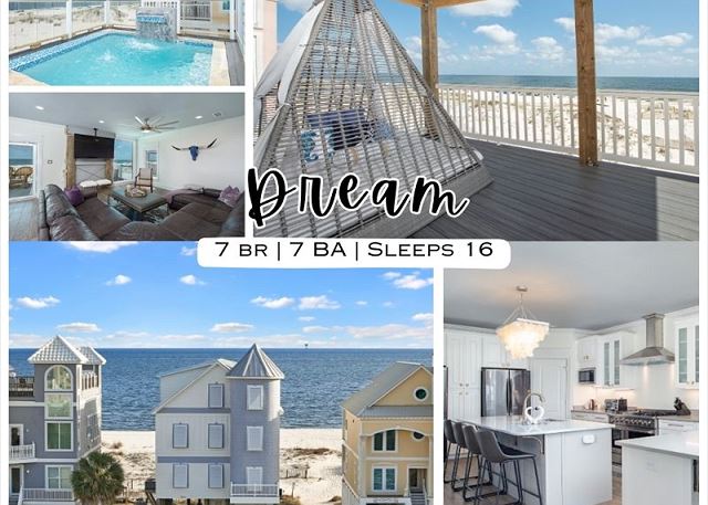 Welcome to DREAM, a one-of-a-kind 7-bedroom, 7-bath luxury retreat on the Fort Morgan Gulf Coast. This home is designed for both entertaining and relaxation, with spacious gathering areas, multiple private retreats, and spectacular Gulf views. The open living areas, chef's kitchen, and first-floor pool make it perfect for families, friends, or groups seeking an upscale beach vacation.