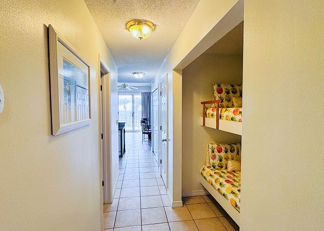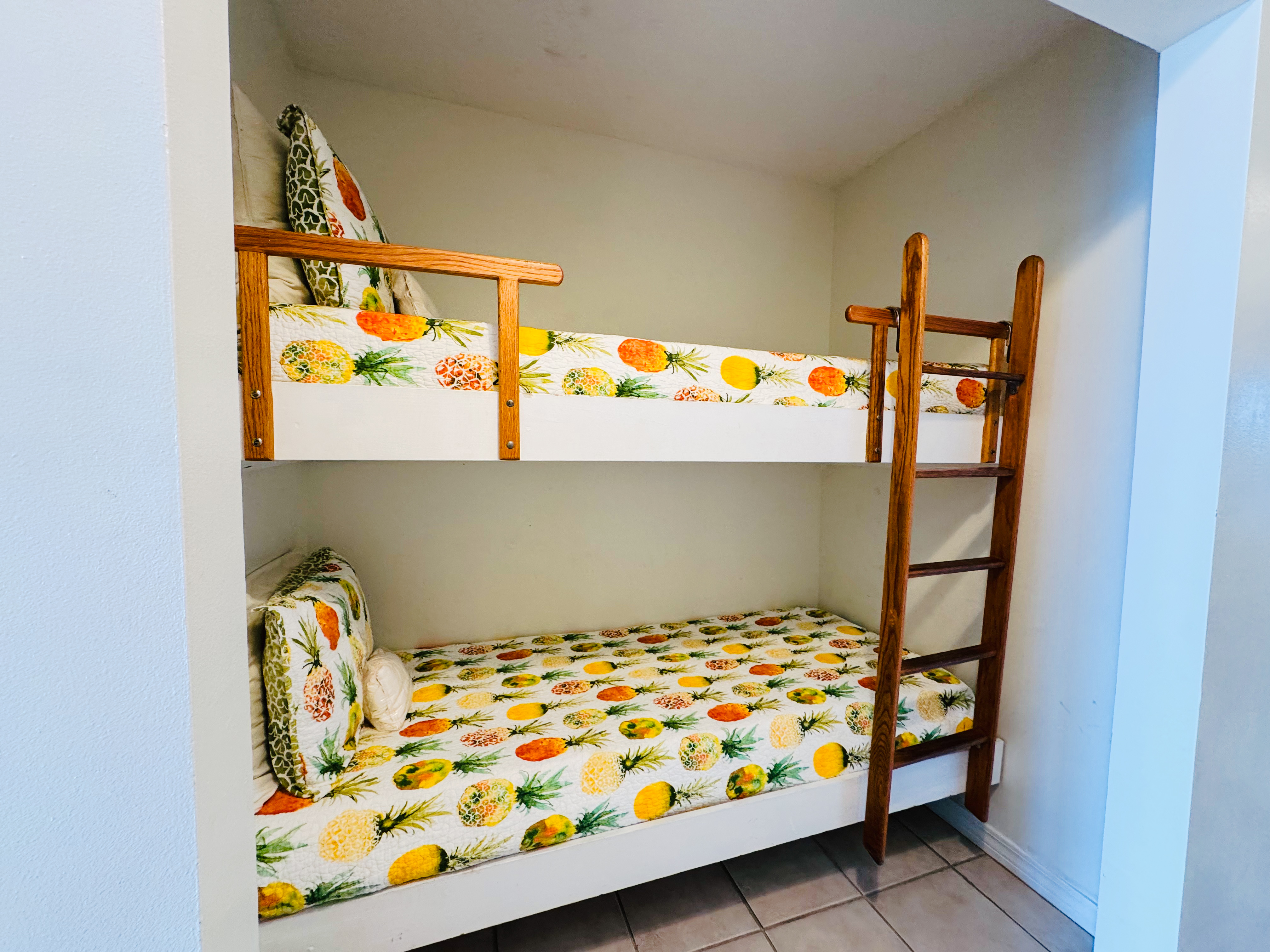 BEDROOMS: Master bedroom with king bed and ensuite, hallway bunk beds, additional sleeper sofa in living area