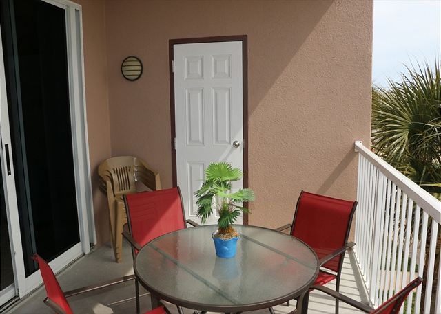 "Yay!! I'm glad you were able to find this awesome property at such short notice. It is so close to the beach and is a great place to get away. We will look into the balcony not having furniture! Come back and see us again, we also have directly gulf front properties!"