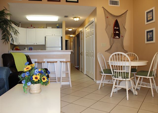 "This condo had everything we needed. Plenty of space for all of us and the bunk beds were awesome also! We didn't have kids but my mom, who is 5'10, slept comfortably in the bottom bunk. The walk wasn't bad to the beach and the view was amazing from the condo balcony. Wifi is available and worked extremely well for all of us! We would definitely go back to this condo again!"
