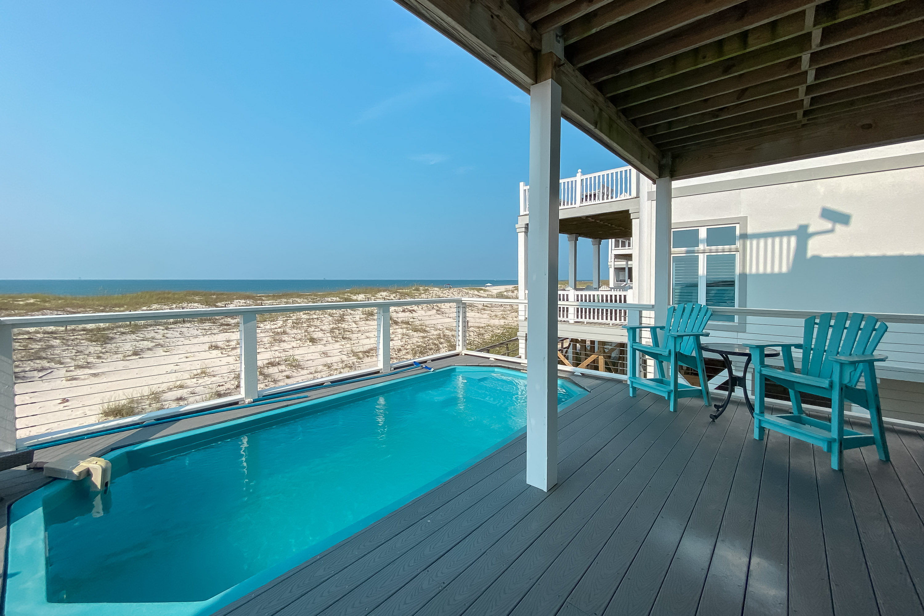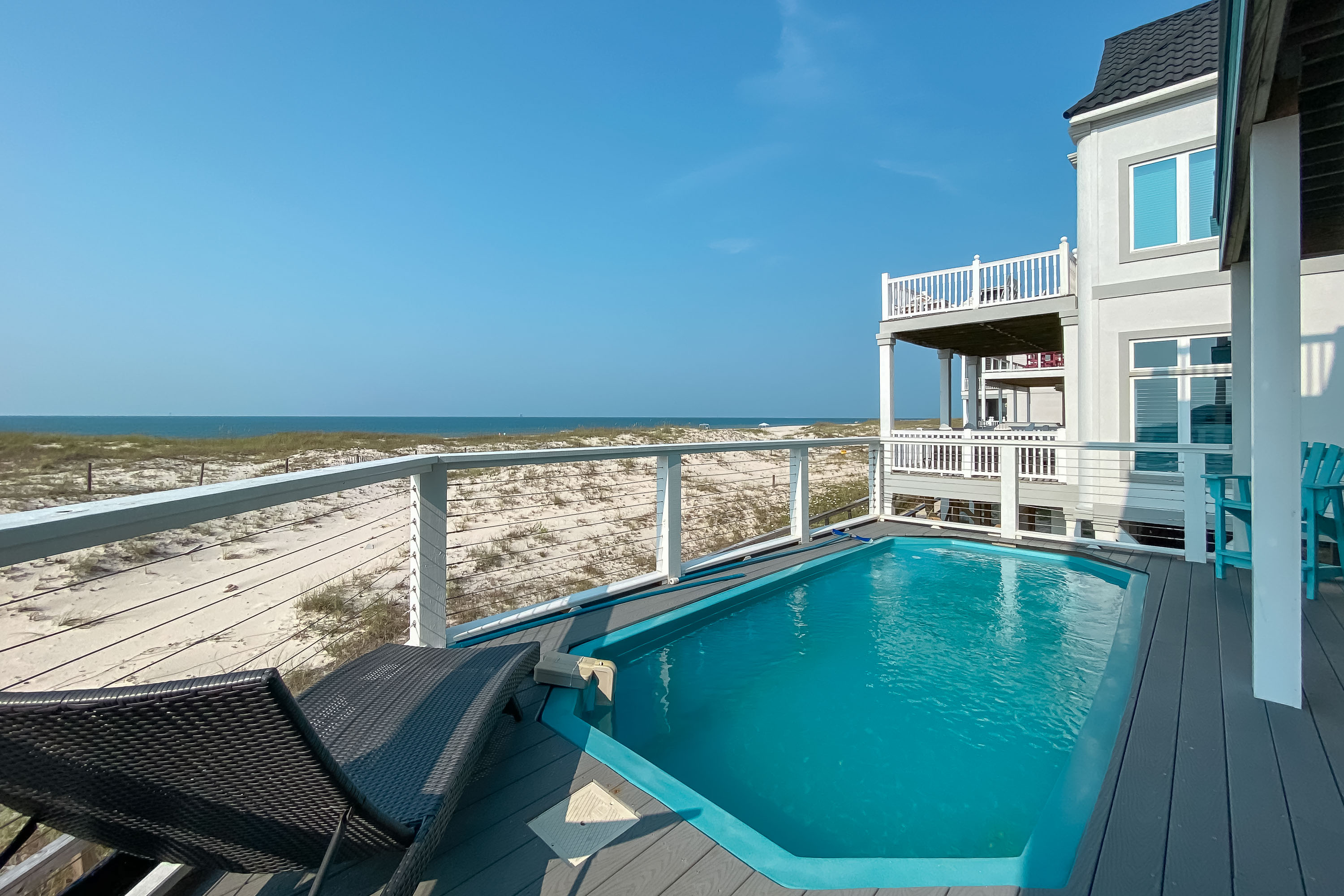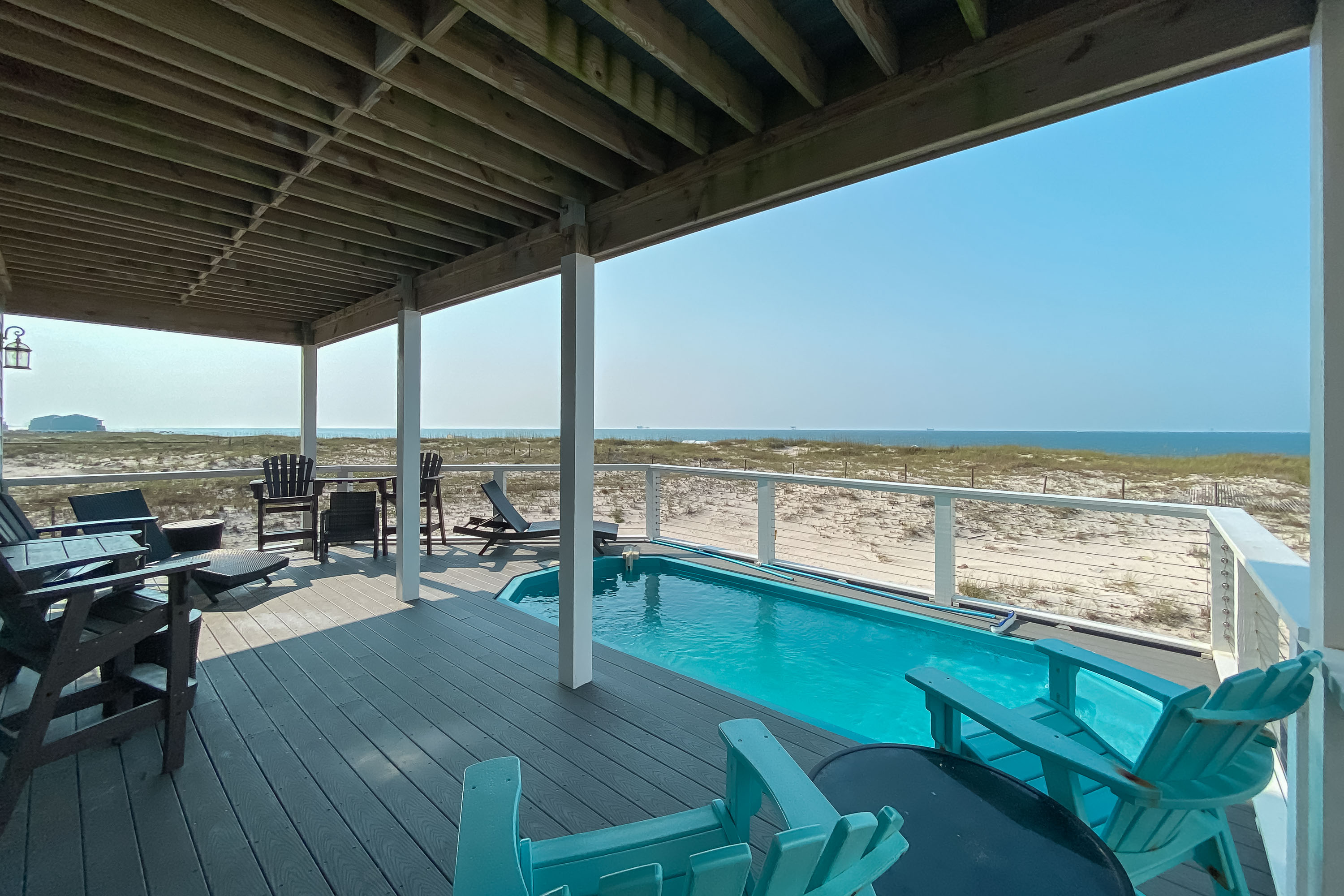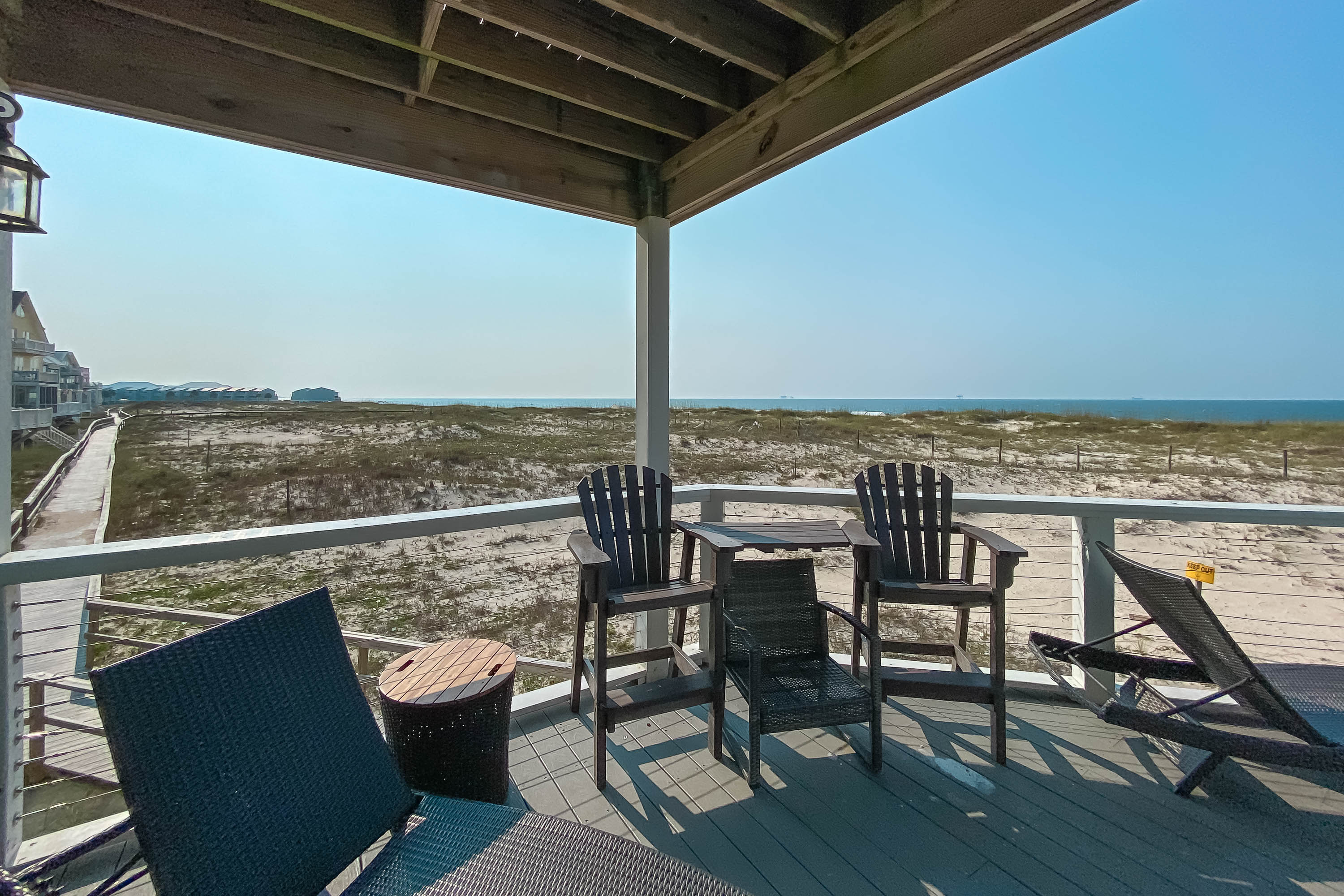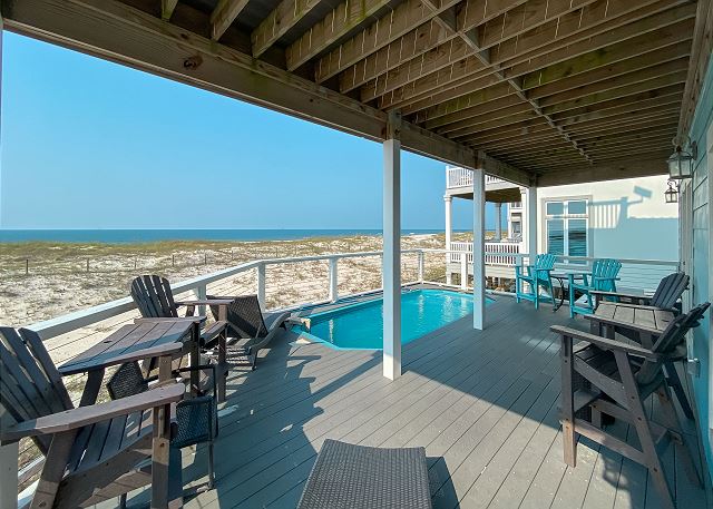 "House is in good condition with comfortable decor. We enjoyed its remote location. You have the beach largely to yourself. The pool on property was awesome. It is not big, but a great place to take a dip and cool off. The community pools were very crowded and not great, so I would not count on using those. You need to bring everything! The rental has the basics, but there are no extras as in some rentals. The grocery stores are NOT close. Also, the pictures on line do not show all of the oil rigs in your view. I was not expecting to see so many. Overall it was a good rental. "