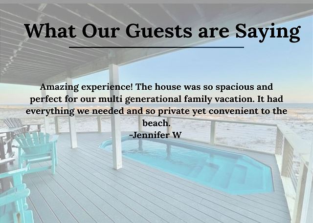 "Amazing experience! The house was so spacious and perfect for our multi generational family vacation. It had everything we needed and so private yet convenient to the beach."