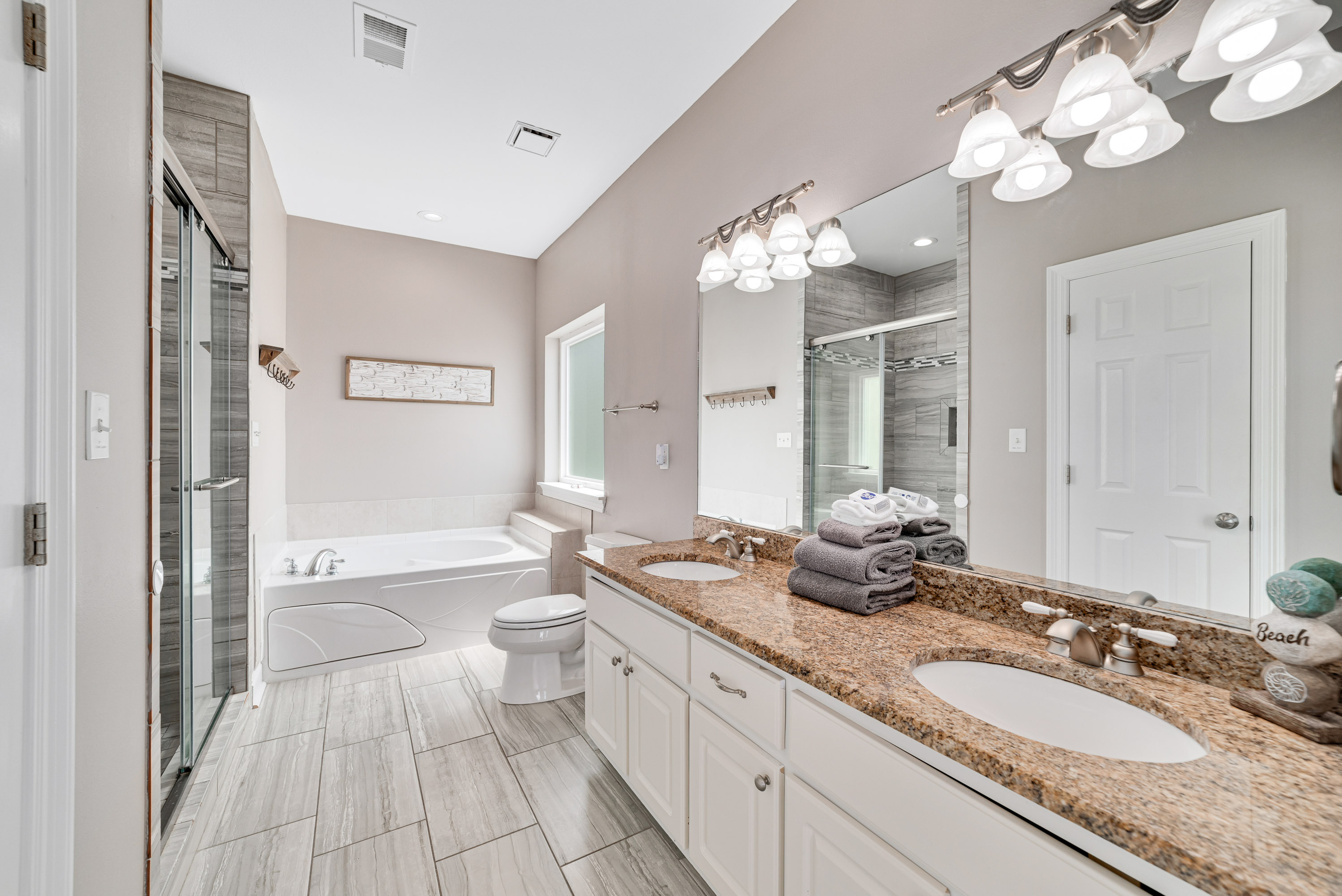 "Large house with all the stuff you need. Tvs in every room, granite full baths in every bedroom. Master suite has it own floor and kitchenette!"