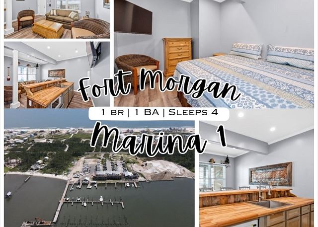 Welcome to FORT MORGAN MARINA 1, a stylish and newly renovated 1-bedroom condo located right on the scenic Fort Morgan Marina. This hotel-style unit comfortably sleeps up to 4 guests and offers a king bedroom, a sleeper sofa, and a semi-private balcony with stunning bay and marina views. Guests can enjoy watching boats, spotting dolphins, or taking in breathtaking sunsets from the balcony.