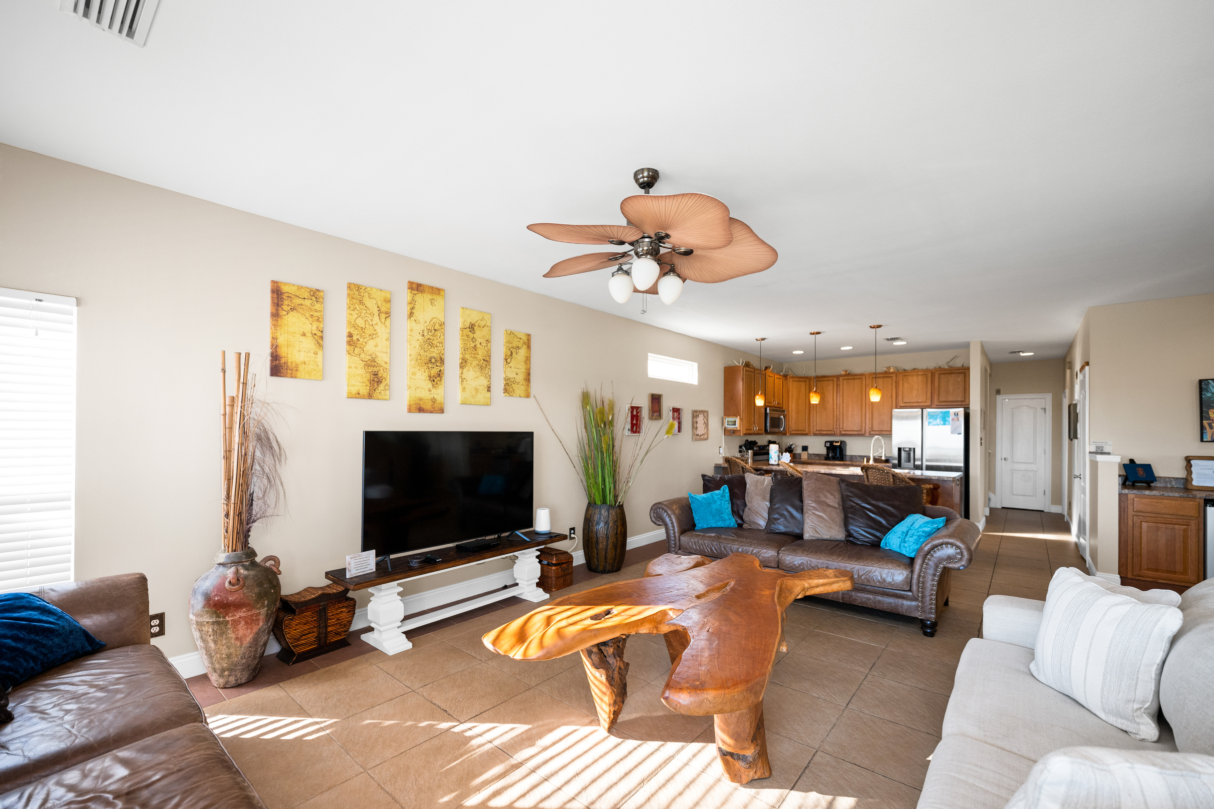 - Comfortable living and dining areas with smart TV