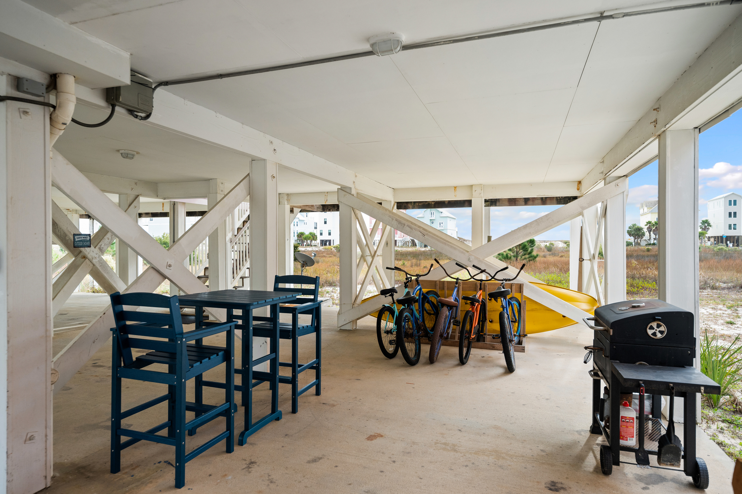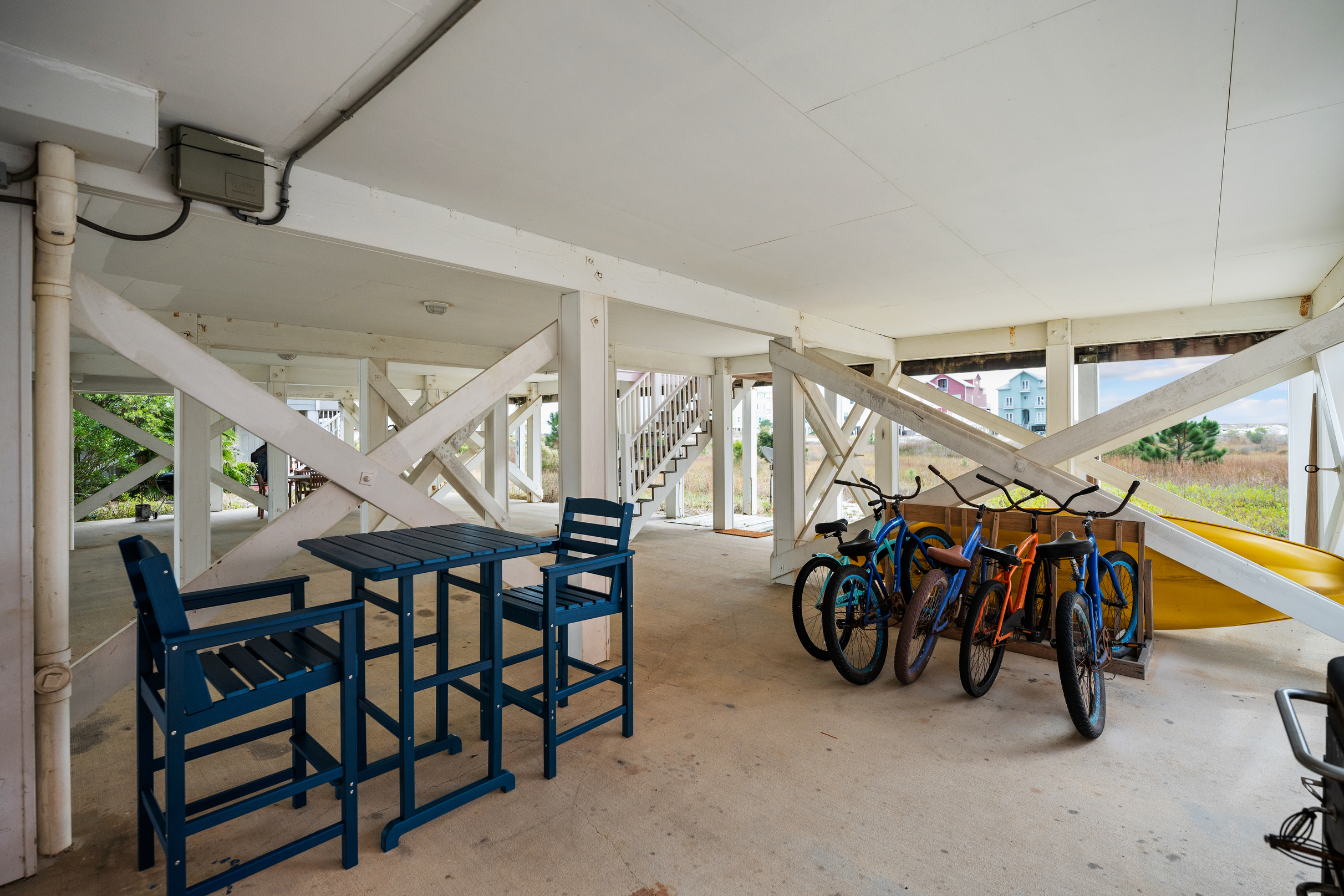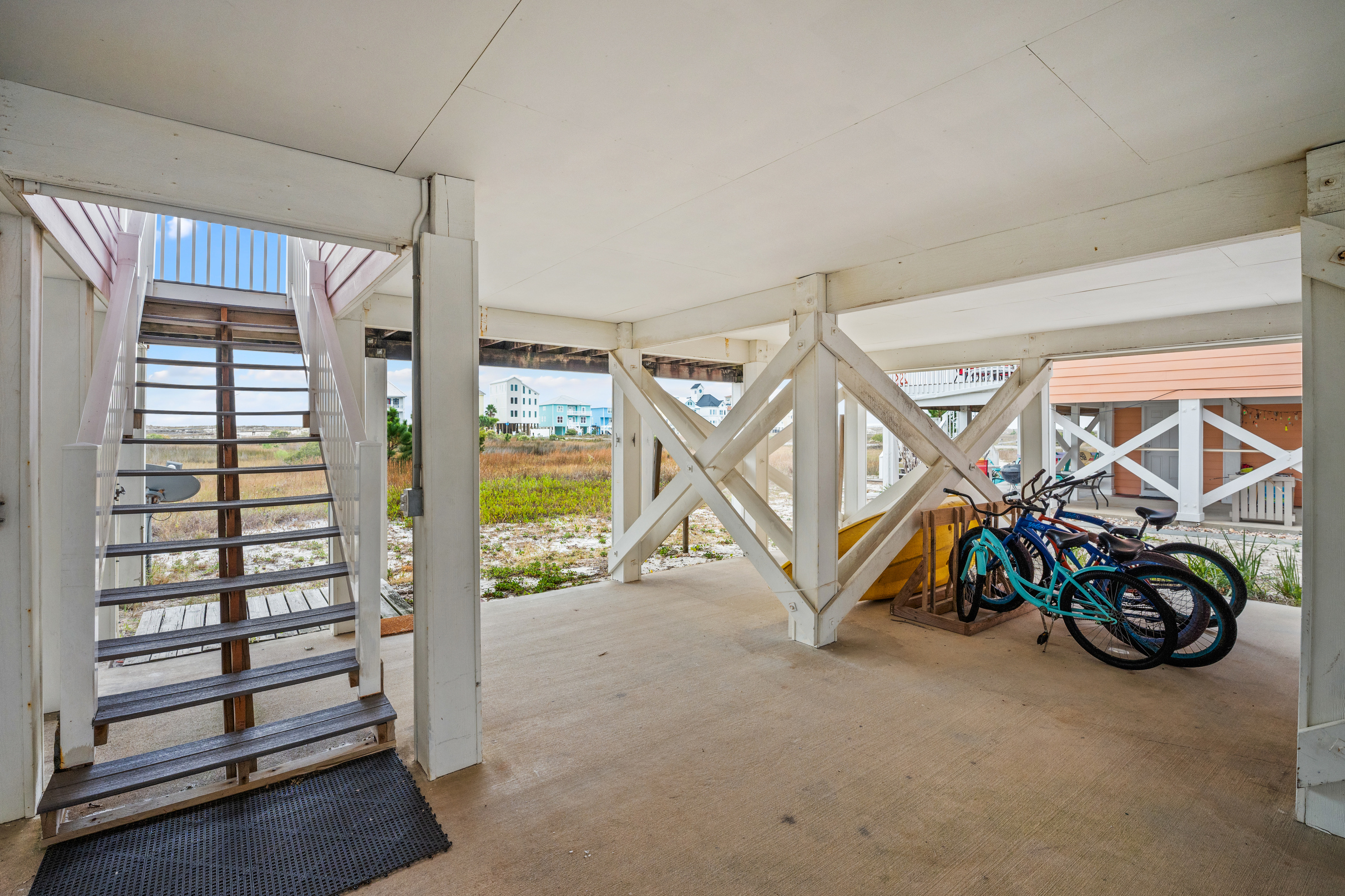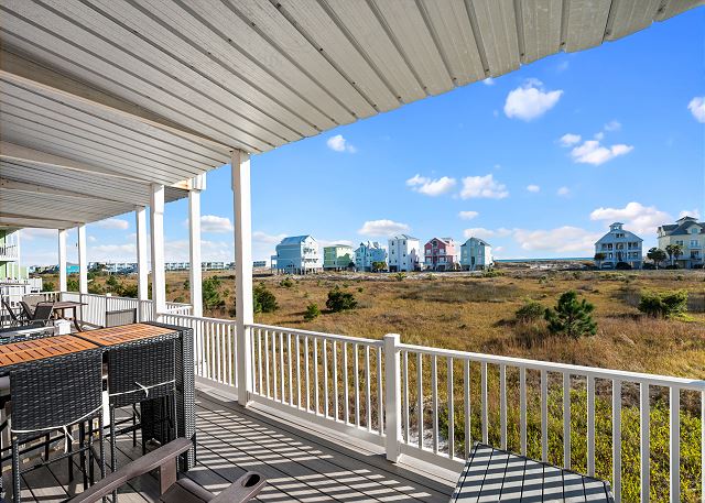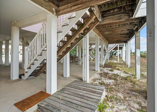 "The property is in an awesome location. Very private area with gated access and a beautiful uncrowded beach available a block away with plenty of parking to haul your beach wares. Although the property is in a private area it has easy access to town and if you just want a few minute ride, there are several grocery/supply shops nearby and a cool restaurant and ice cream shop. It’s also minutes from a fort which is a great time for you history buffs. The house has parking for several vehicles, and the lowest level provides a BBQ grill, a shower to rinse sand and bikes to ride. It also has space to store your beach wares. The house is well maintained and has large open areas to sit and relax, a bar area, a nicely appointed and stocked kitchen with all the tools for cooking. The equipment is modern and up to date with a nice size refrigerator and oven. There are TVs to watch your favorite shows. The bedrooms are nicely appointed with each room having its own bathroom and shower. We never ran out of hot water as we all showered in the am. The master is well appointed with its own balcony overlooking the beach and a natural preserve. The lower balcony is a great place to read and soak in the views while enjoying a morning coffee or and evening refreshment. It’s also a great place to watch the moon rise and set. All in all we had a wonderful time and recommend this property without hesitation."