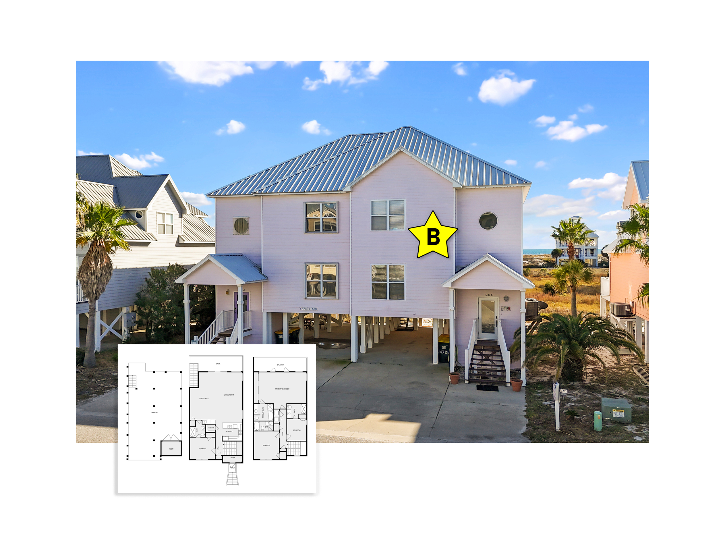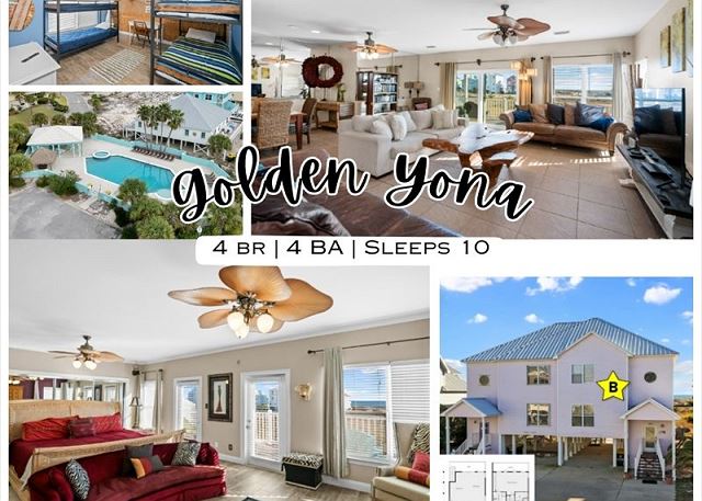 Welcome to GOLDEN YONA, a 4-bedroom, 4-bath duplex in Fort Morgan ideal for families or groups seeking a relaxing beach vacation. This 2,891 sq ft home comfortably sleeps up to 10 guests with private baths for each bedroom and multiple living areas for relaxing or entertaining.