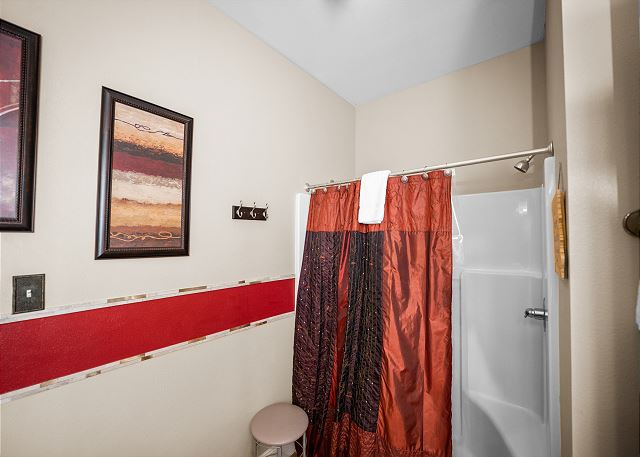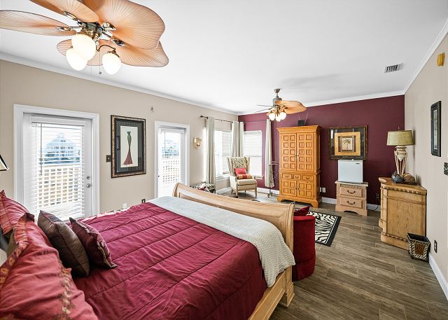 SECOND FLOOR: Master bedroom with king sleep number bed and private bath, second bedroom with queen bed and private bath, third bedroom with twin bunk beds + twin trundle and private bath