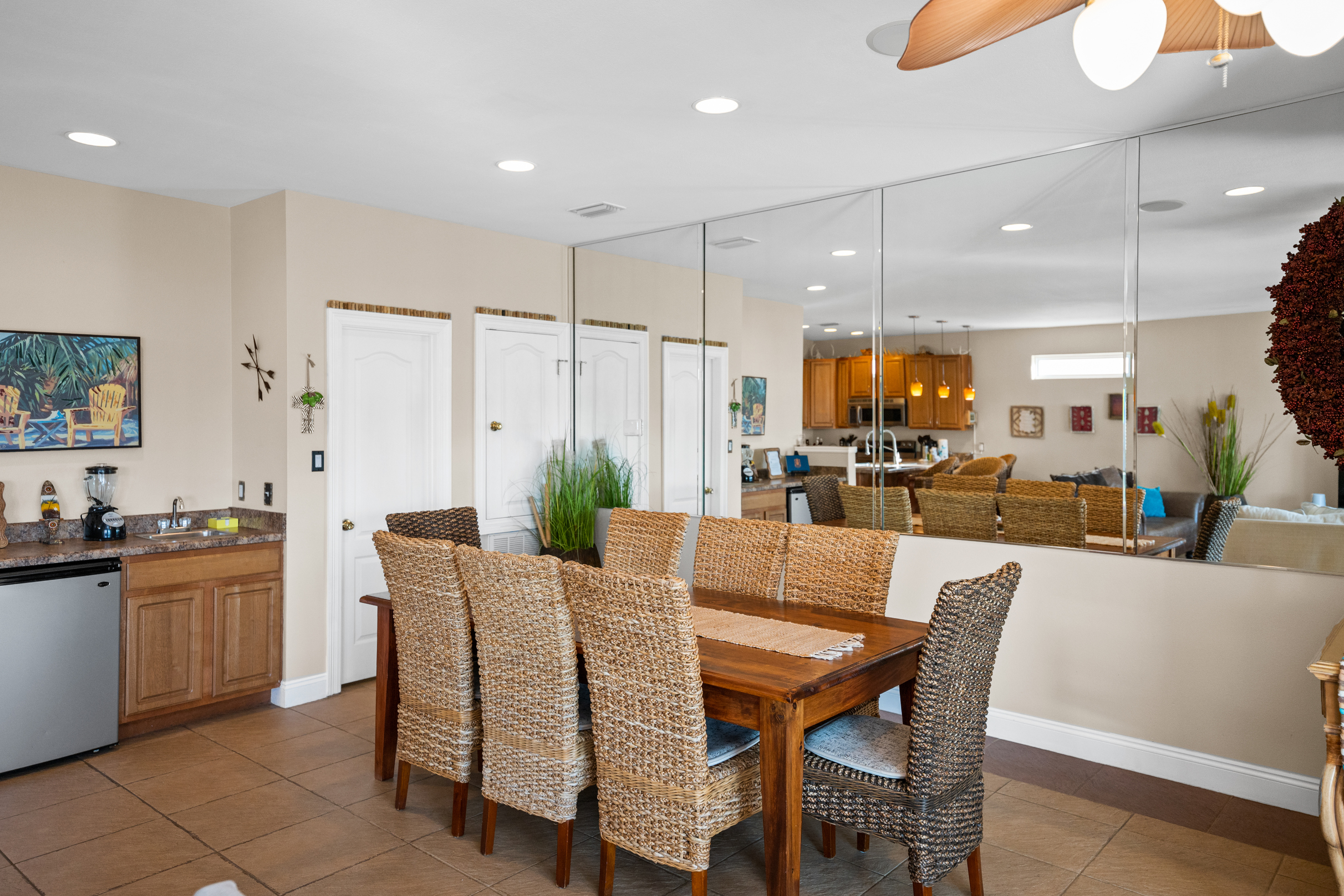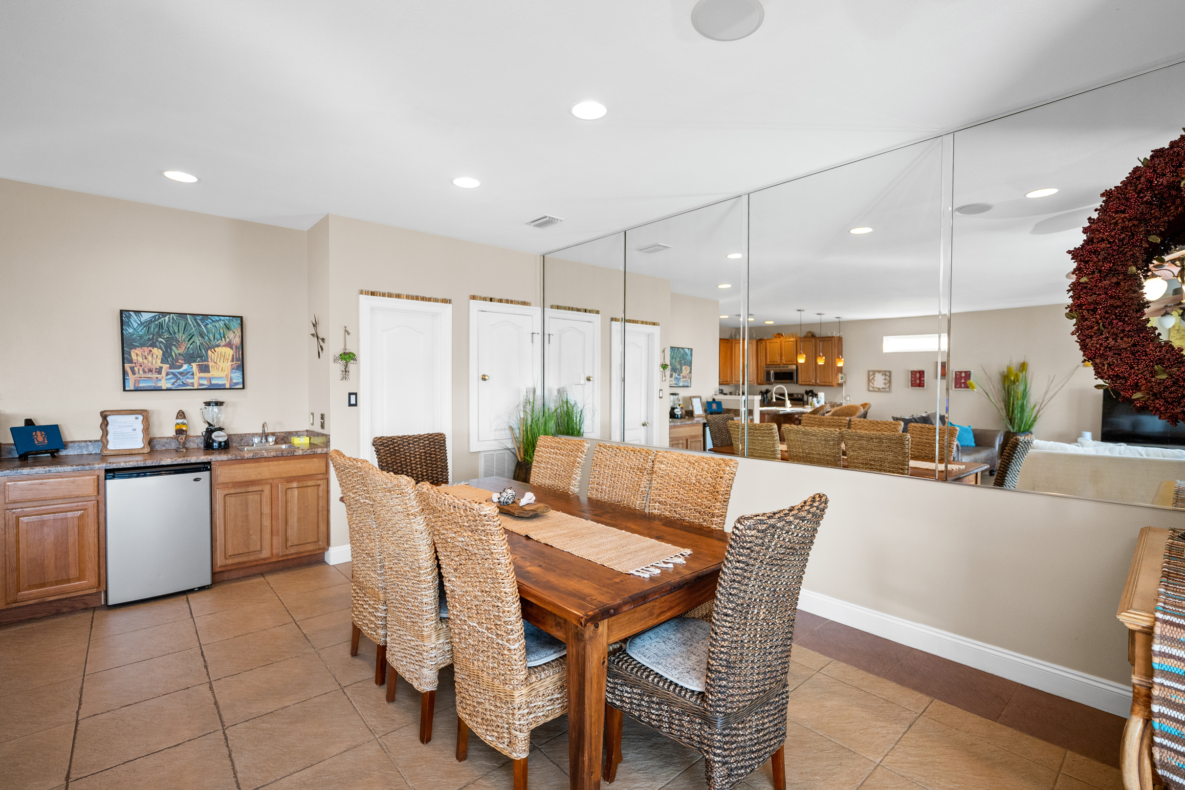 - Fully equipped kitchen, wet bar, and wine cooler