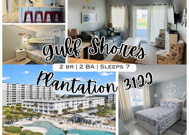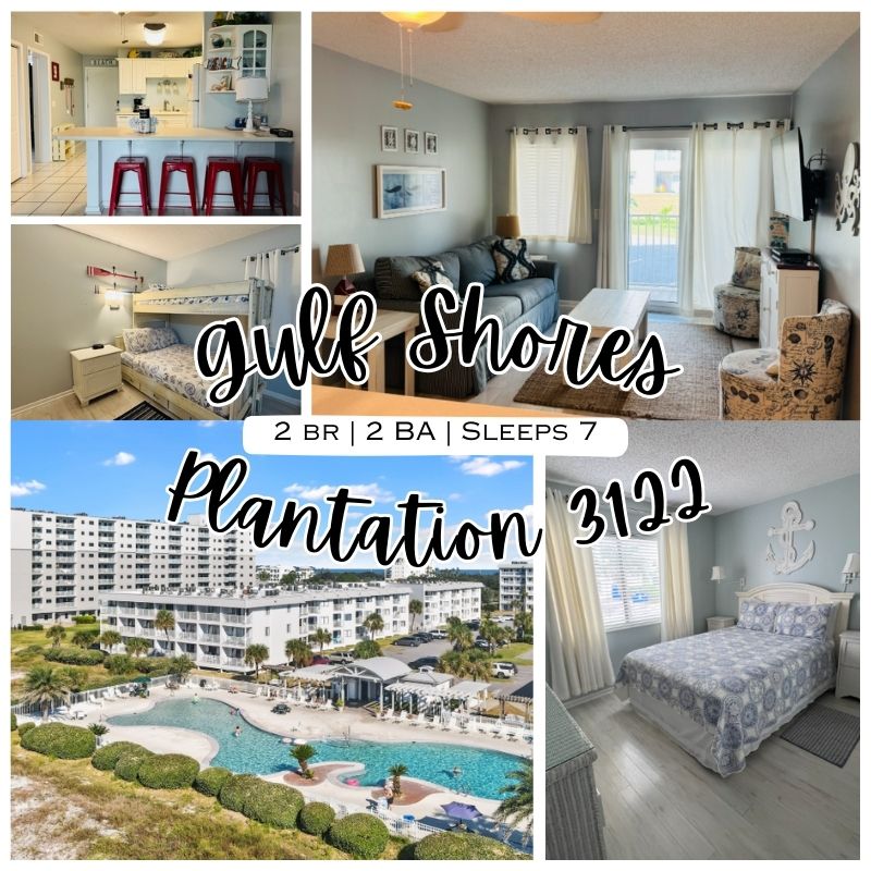 Welcome to GULF SHORES PLANTATION EAST 3122, a comfortable 2-bedroom, 2-bath condo ideal for families or groups seeking a relaxing Gulf Coast getaway. This bright unit comfortably sleeps up to 7 guests and features a fully equipped kitchen, private balcony, and updated beach-inspired décor. Guests have access to shared community amenities including pools, hot tub, fitness center, sports courts, seasonal beach chair service, and on-site golf cart rentals. Parking passes are required for the complex and purchased upon arrival. Laundry facilities are available on site for a fee.