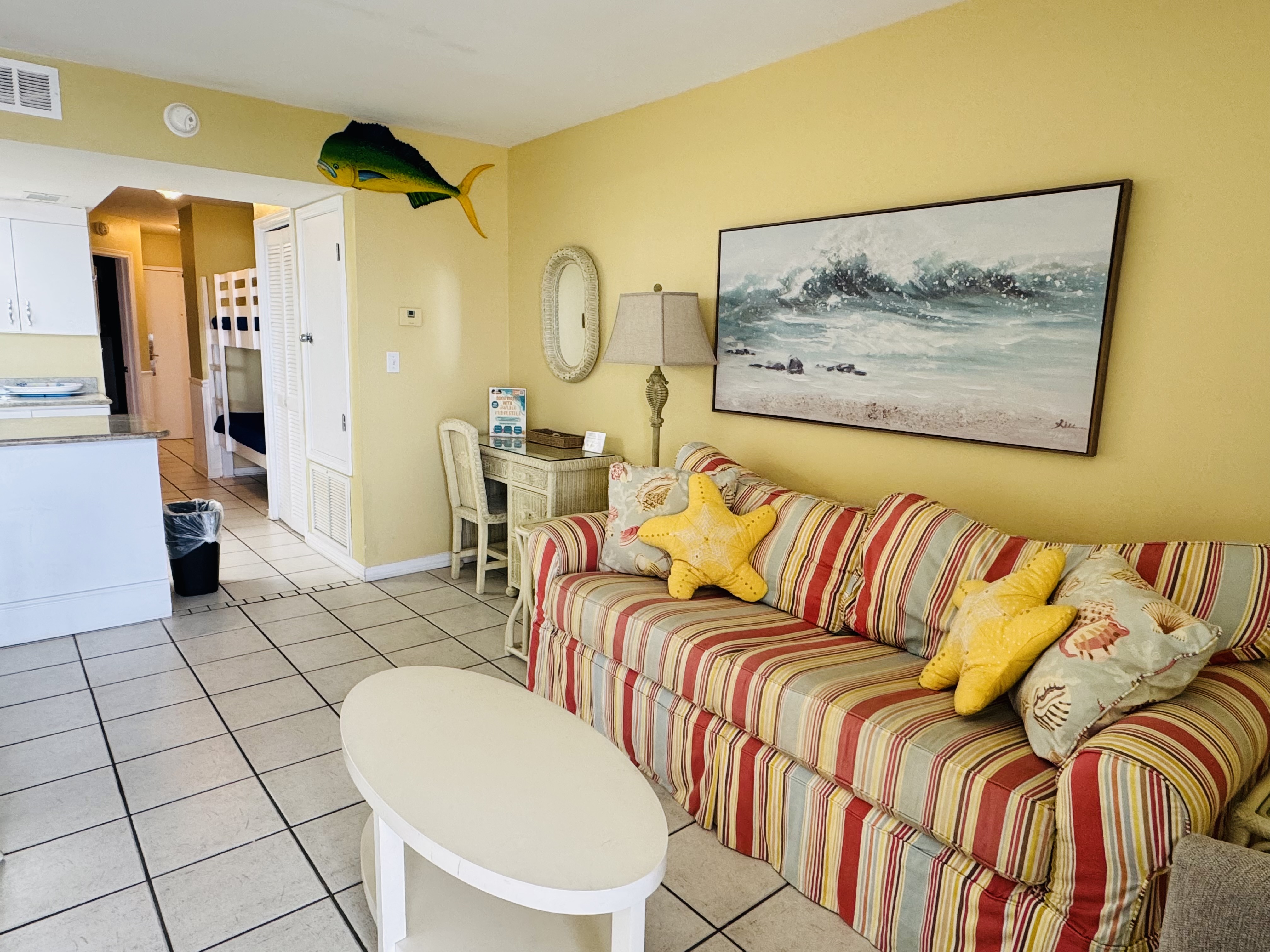 Welcome to GULF SHORES PLANTATION PALMS 6507, a bright and inviting 1-bedroom, 1-bath condo ideal for families or small groups seeking a coastal getaway. This condo comfortably sleeps up to 6 guests and offers a fully equipped kitchen, bunk beds, sleeper sofa, and Gulf-view living areas. Guests can enjoy access to community pools, hot tubs, and nearby sandy beaches for a relaxing Alabama Gulf Coast vacation.