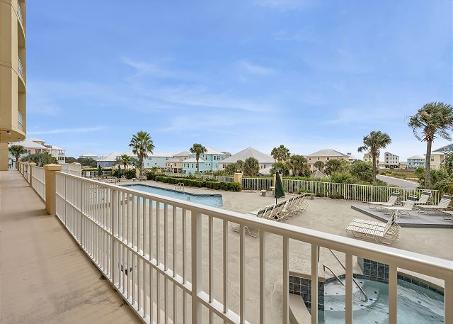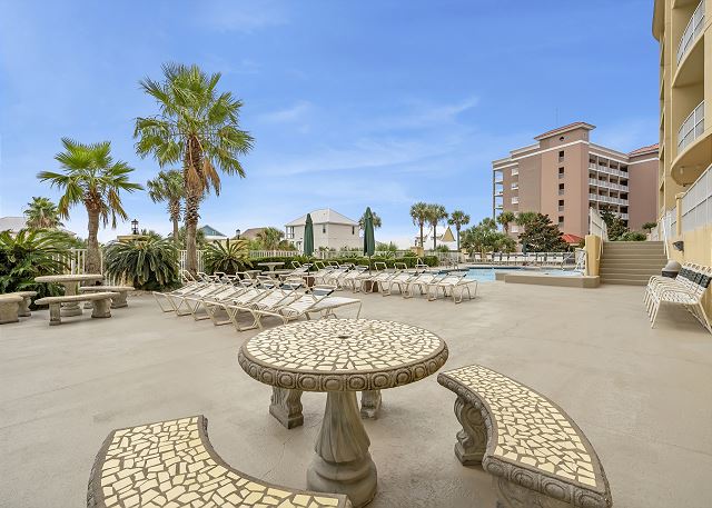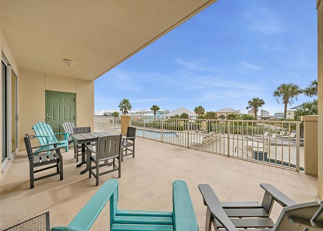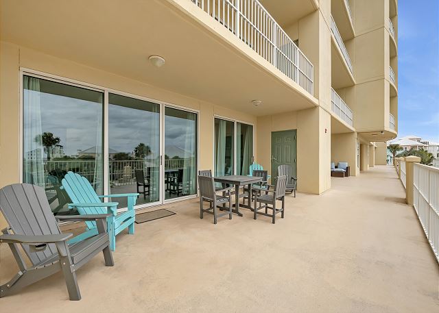 OUTDOOR SPACE: Private first-floor patio with Gulf views and nearby pool access