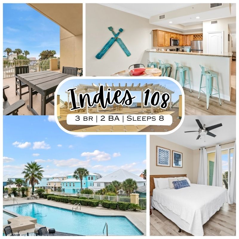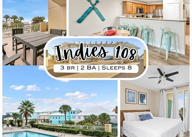 Welcome to INDIES 108, a beautifully maintained 3-bedroom, 2-bath condo offering comfort and convenience in a relaxed coastal setting. This first-floor unit sleeps up to 8 guests and features a well-appointed kitchen, spacious living area, and private patio perfect for unwinding after a day at the beach. Guests enjoy access to the community swimming pool, hot tub, and fitness room, all within a smaller, easy-to-navigate condo complex. With on-site parking, elevator access, and Gulf views, Indies 108 is an excellent choice for families or groups seeking a laid-back beach getaway.