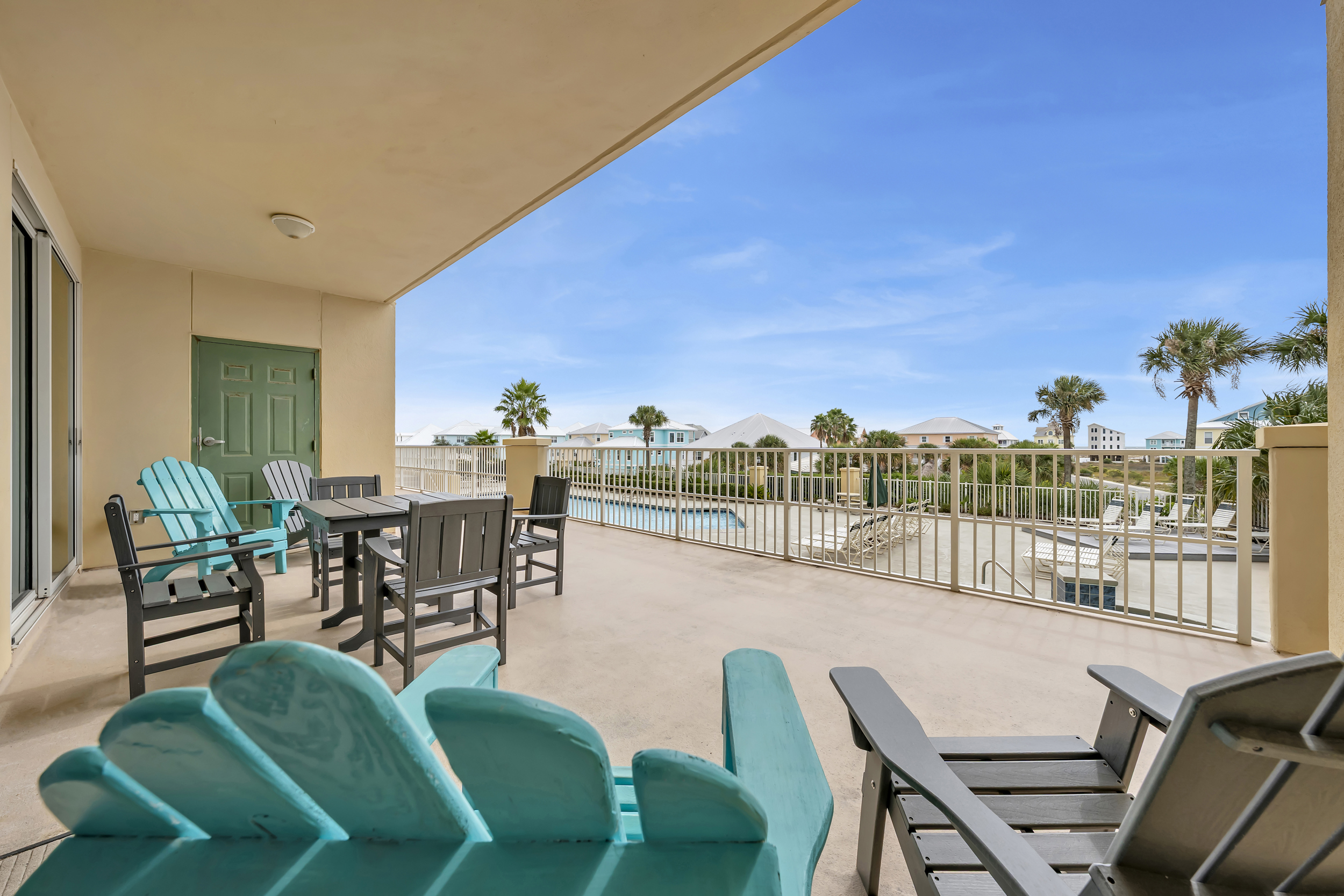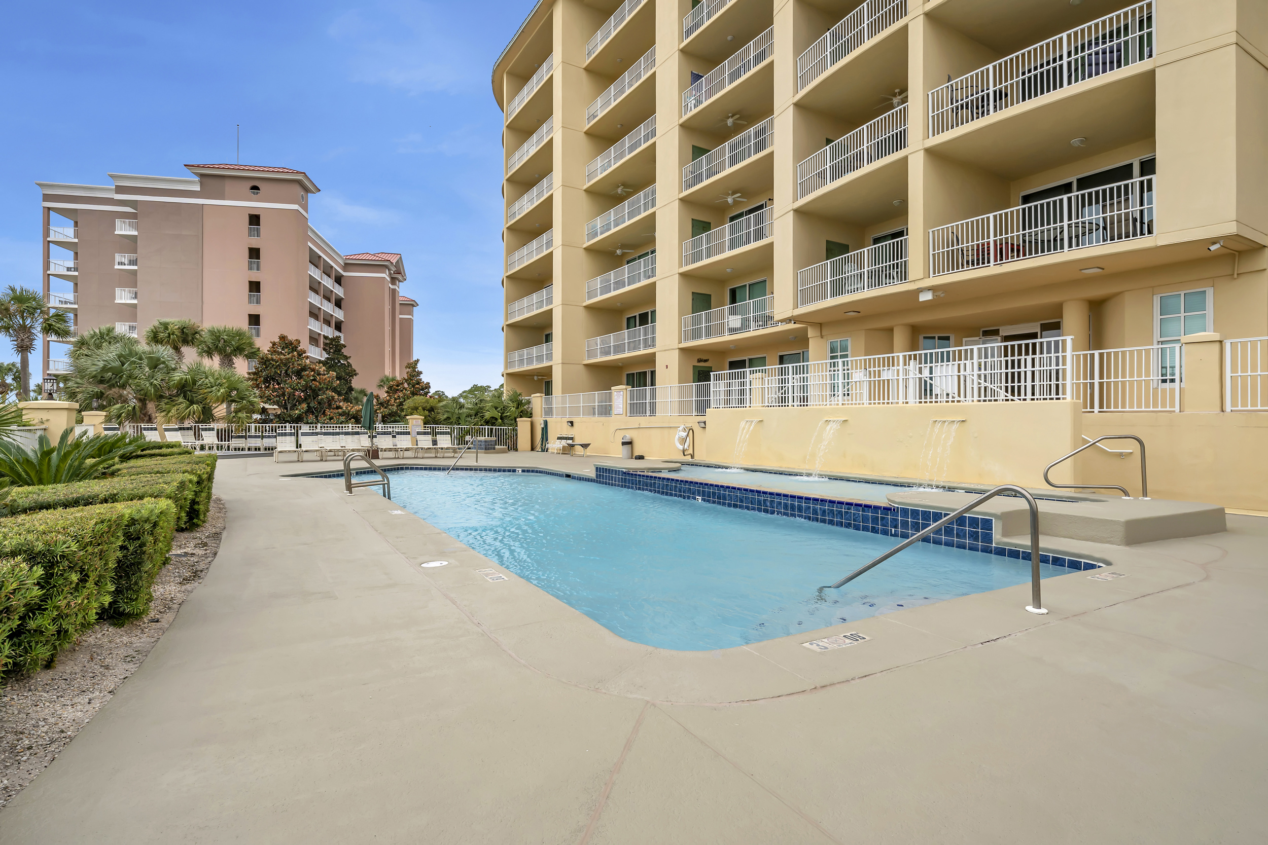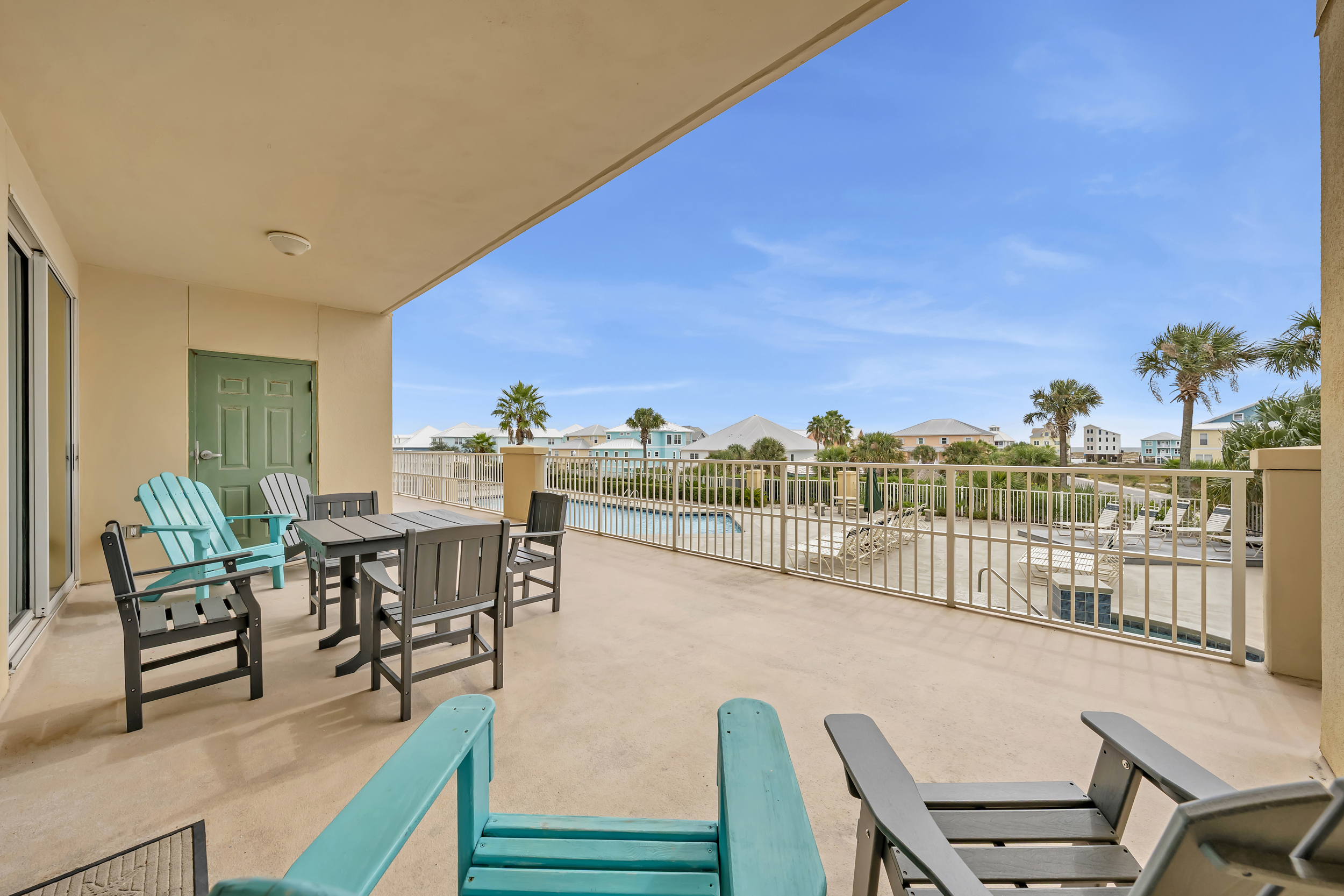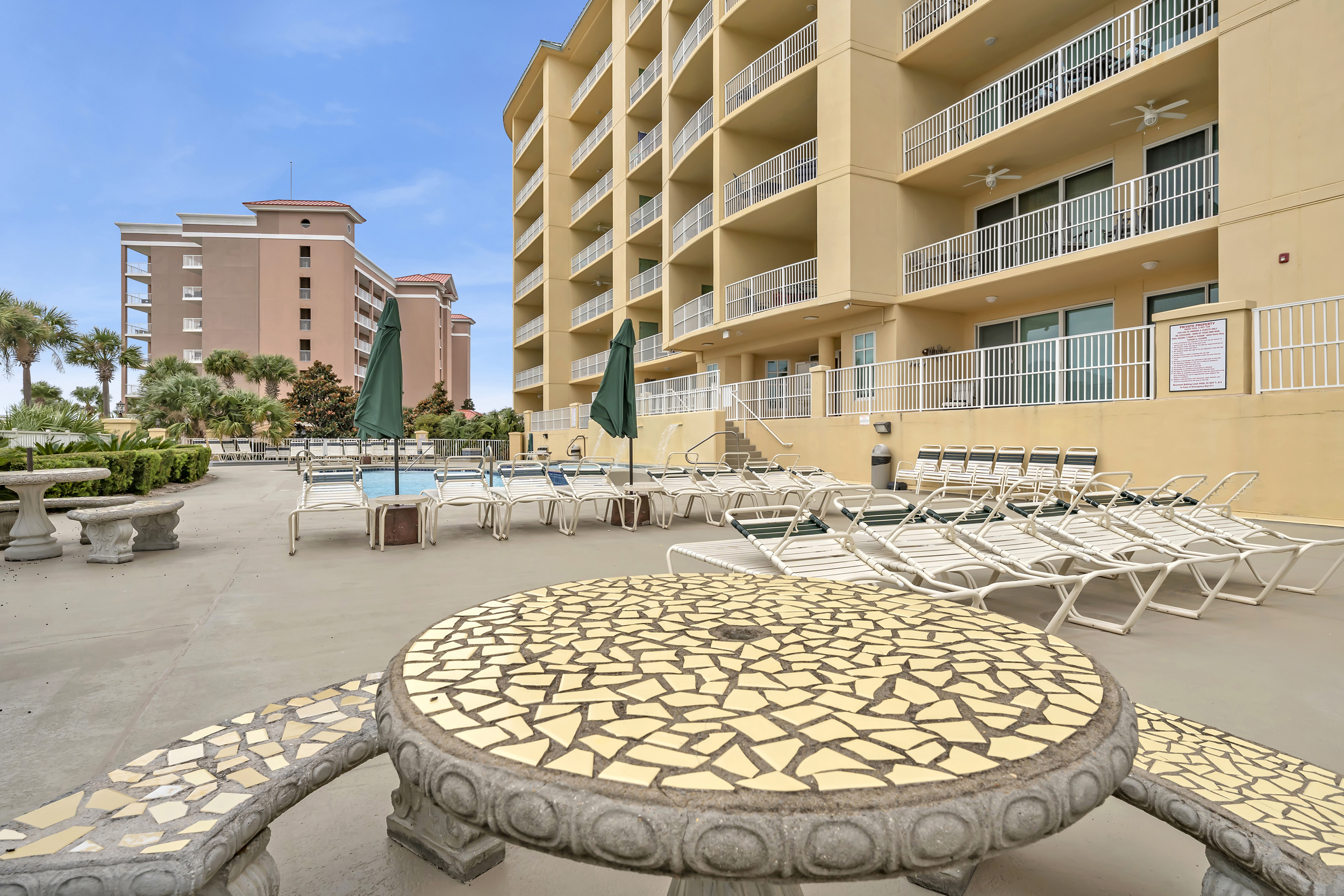- First-floor location with easy access to pool and amenities