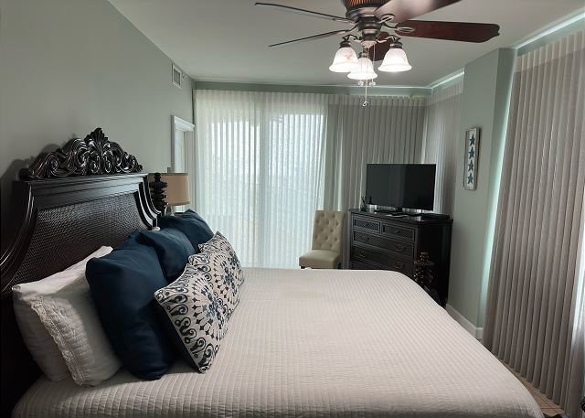 SECOND BEDROOM: King bed with convenient access to a full bathroom