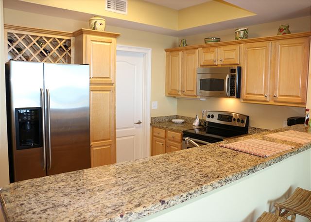 - Fully equipped kitchen with granite countertops and stainless appliances