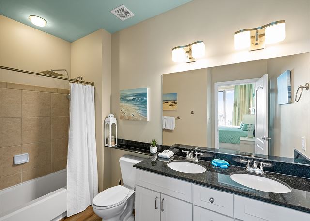 "We had a wonderful and relaxing stay at Shore Beats Work. The condo is bright and airy with a gorgeous view of the beach. It's perfect to wake up and have a morning cup of coffee on the balcony and watch the sun rise. A short walk to the beach (which has quite a private feel), and you can spend the day relaxing with the sun on your head and toes in the sand. After a great day on the beach, come back to the condo and it has a kitchen perfect for cooking. Then wrap your evening up with a dip in the hot tub! The pool is great as well, especially for a family with kids. Town is just a quick drive away with lots of cute shops and restaurants. This place is the perfect getaway. I can't wait to go back!"