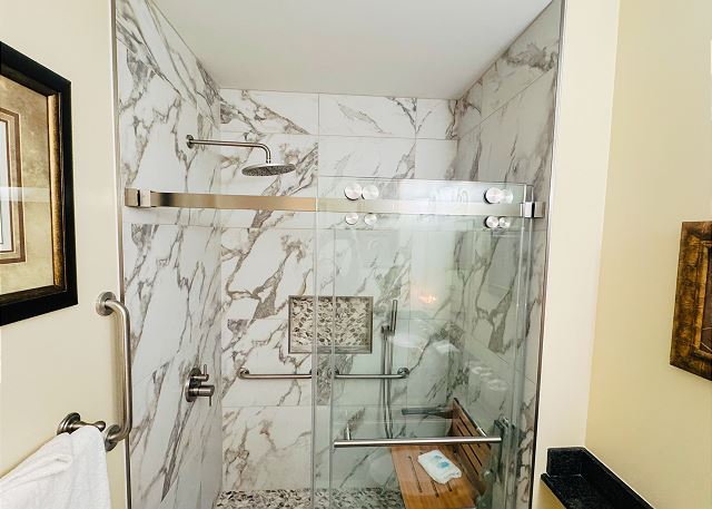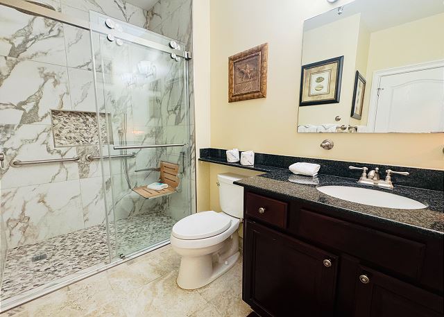 - Second bedroom with queen bed and additional full bathroom with walk-in shower