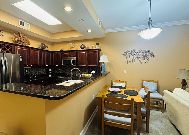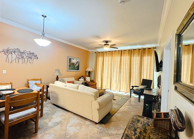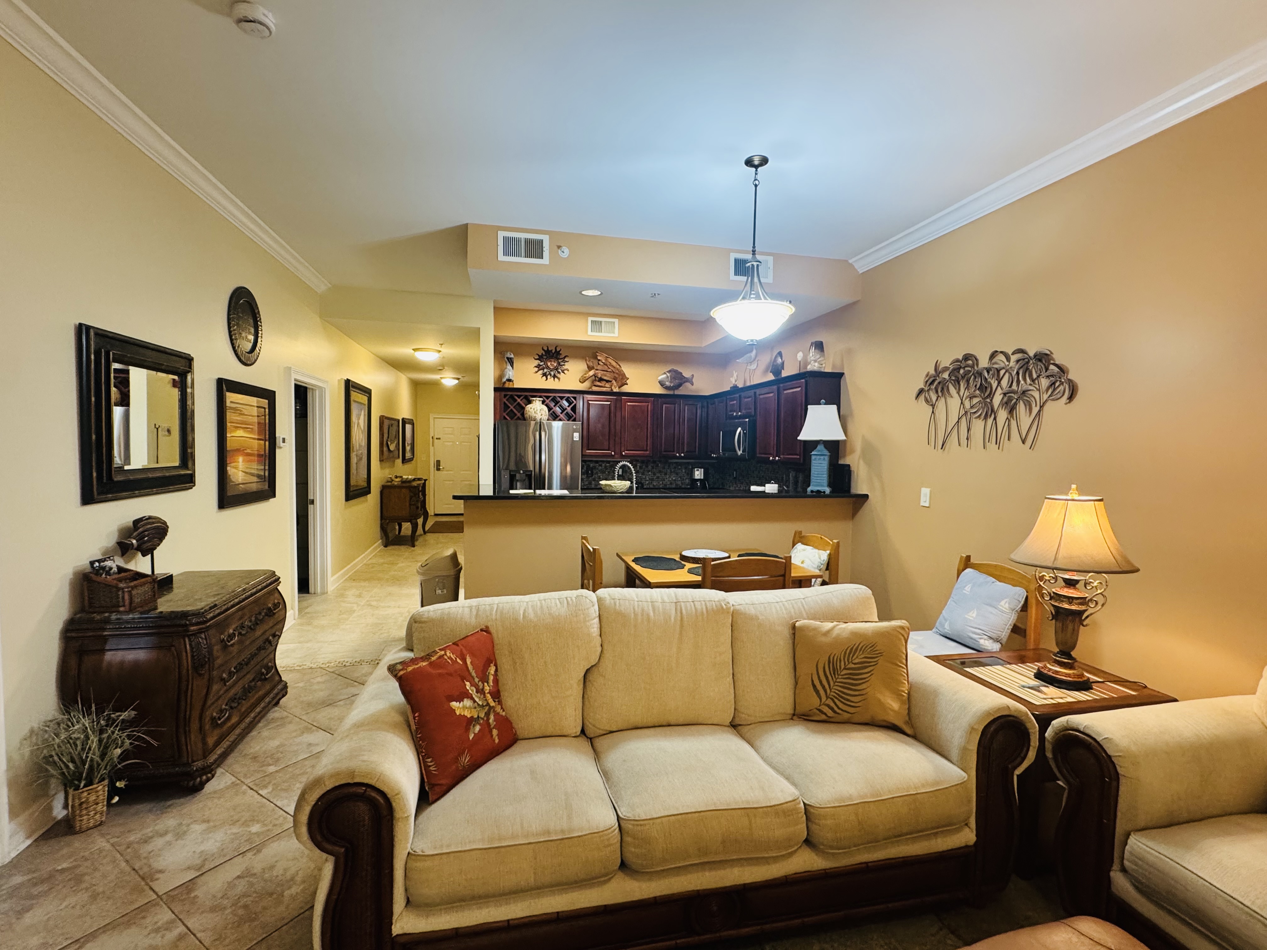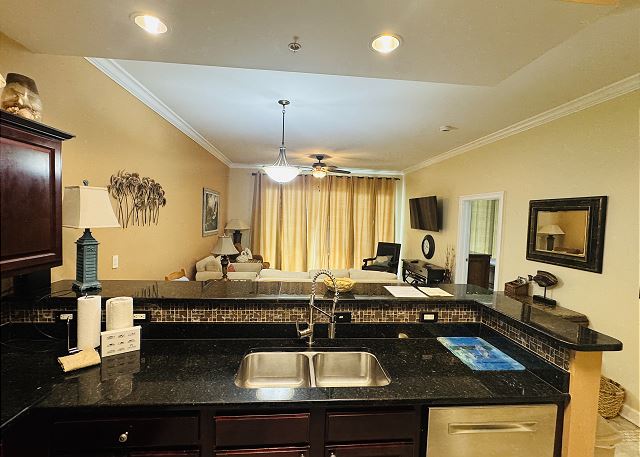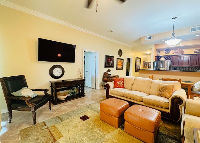 "This was my first time staying here. The check in process both by email and on site was a seamless experience. The staff was very easy to work with. The condo itself was very well maintained, clean and very well stocked. It had all vacation needs covered and beyond. Access in and out of the location was easy, not complicated at all. Ample parking. It was nice to have a Tacky Jacks in walking distance. The grounds and location are very well kept and are as pretty as they look on the website. Had a great vacation"