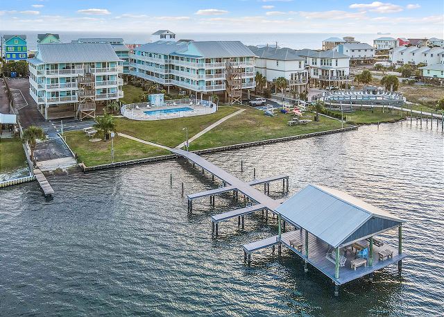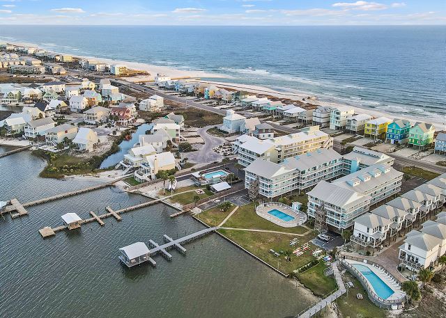 Welcome to LAGOON RUN 102, a 3-bedroom, 2-bath lagoon-front condo ideal for families or groups seeking a coastal retreat. This home comfortably sleeps 6 guests with a king bed, queen bed, and twin beds. Enjoy a fully equipped kitchen, spacious living area, and a large lagoon-view balcony. Guests have access to the complex pool, pier, boat launch, and easy deeded beach access. Located just a block from Lagoon Pass and 3 miles west of Hwy 59, this condo offers both convenience and serene waterfront relaxation.