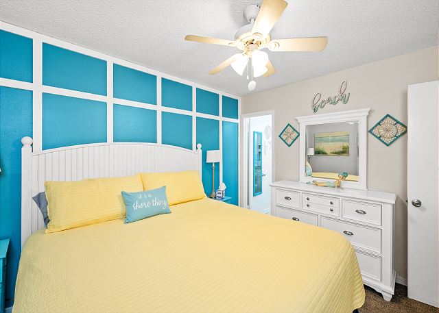 PRIMARY BEDROOM: King bed with direct access to shared bath