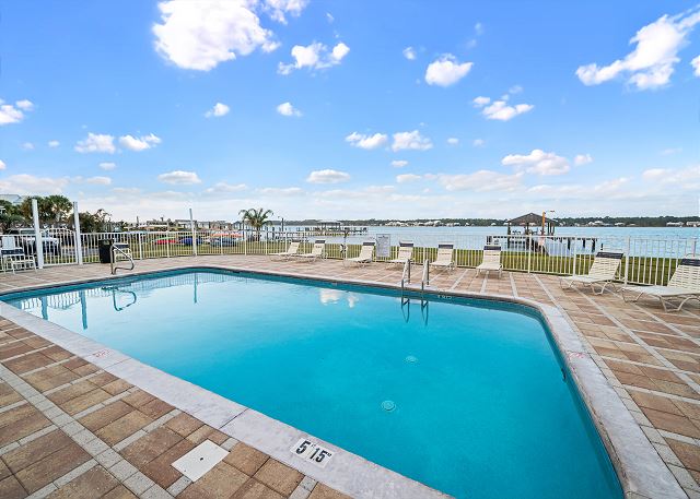 ADDITIONAL FEATURES: Assigned parking for 2 vehicles, lagoon-front pool, pier, boat launch, and deeded beach access