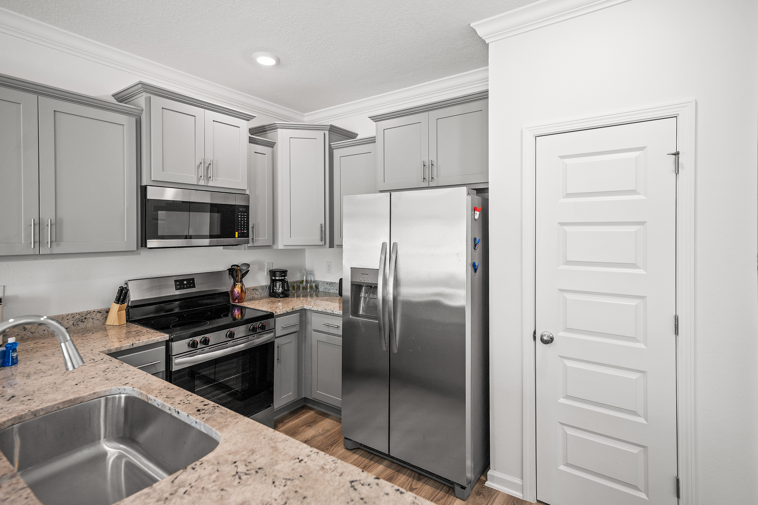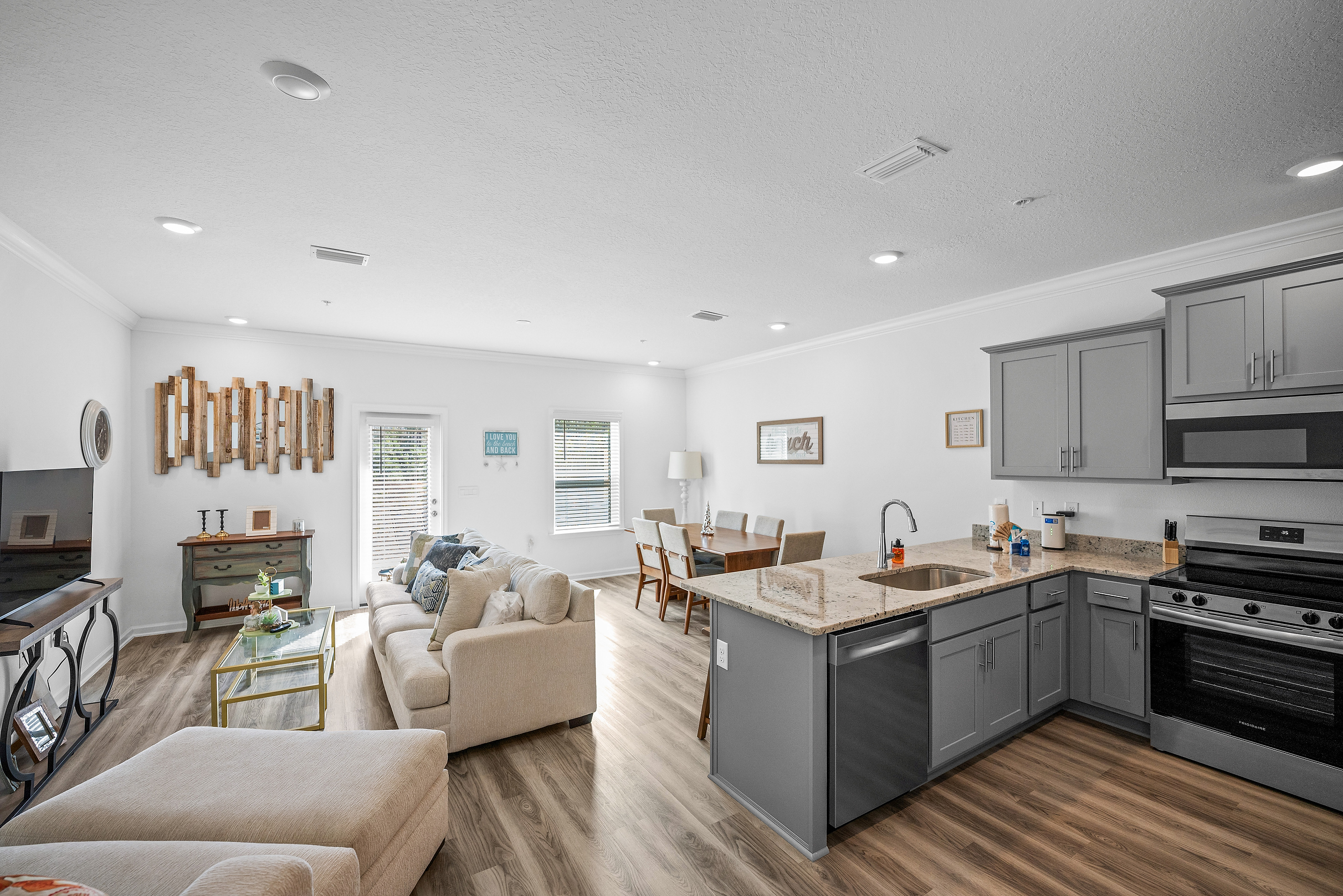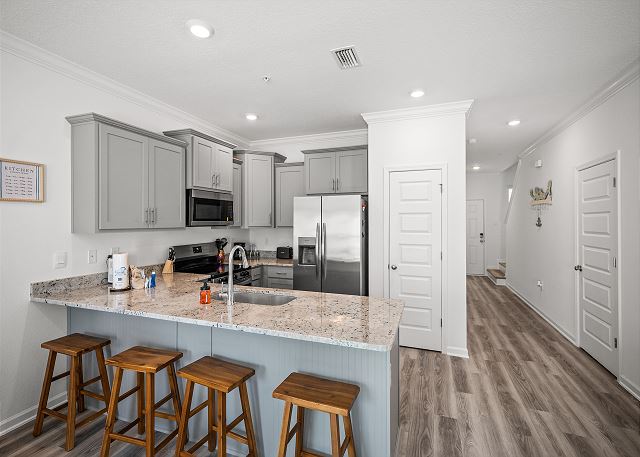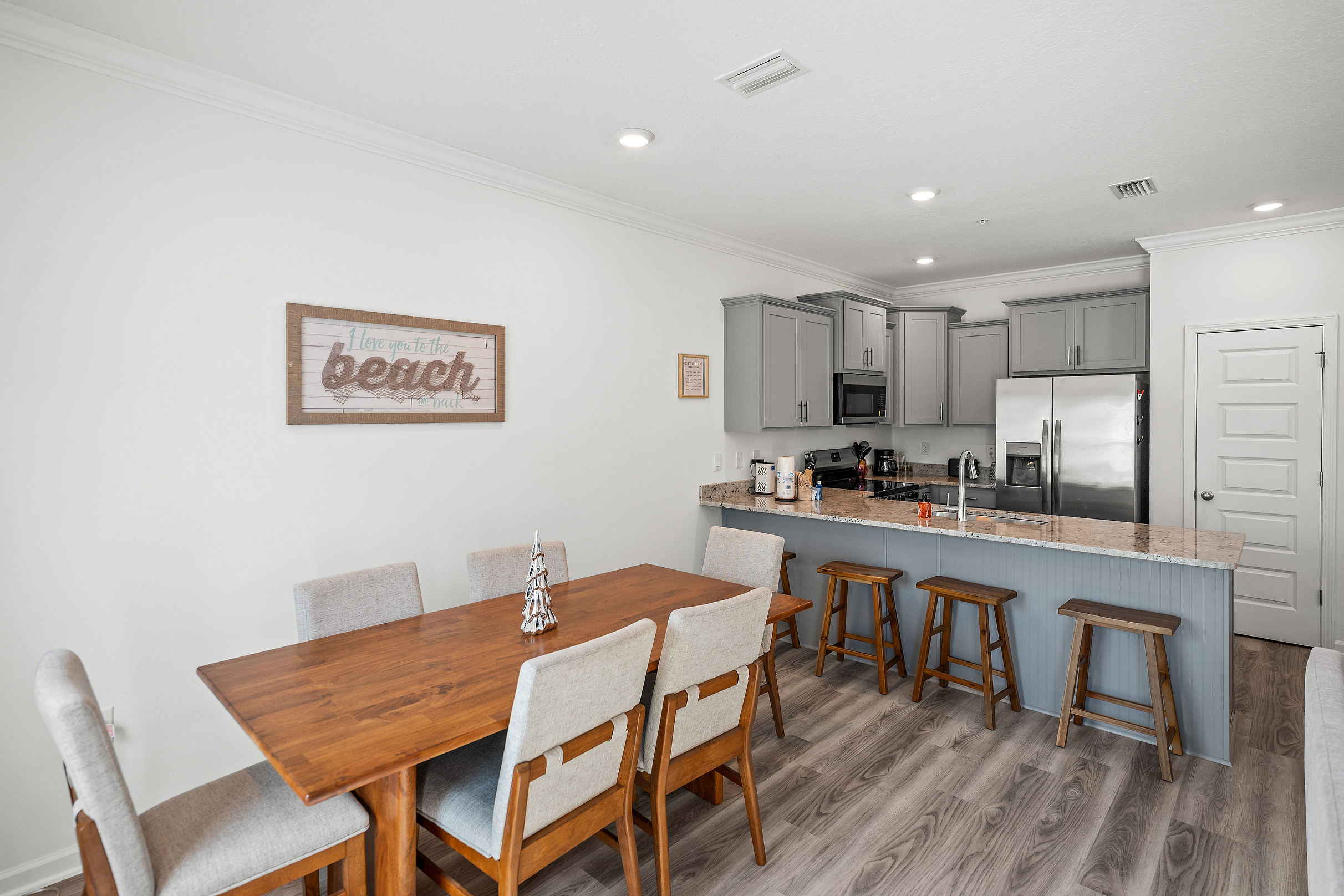 Welcome to LOST BAY, a beautifully designed 3-bedroom, 2.5-bath townhome in Orange Beach, Alabama. With 1,437 square feet of modern living space, this two-story home offers an open layout filled with natural light and stylish finishes. The kitchen seamlessly connects to the dining and living areas, creating the perfect space for entertaining or unwinding, while the private back patio extends your living space outdoors. Upstairs, the spacious primary suite features a walk-in closet and a luxurious ensuite bath with double vanity, soaking tub, and walk-in shower. Two additional bedrooms, a full bathroom, and an upstairs laundry room provide added convenience. Enjoy peace and quiet while being just minutes from the white sand beaches, abundant shopping and dining, and quick access to the Beach Express.