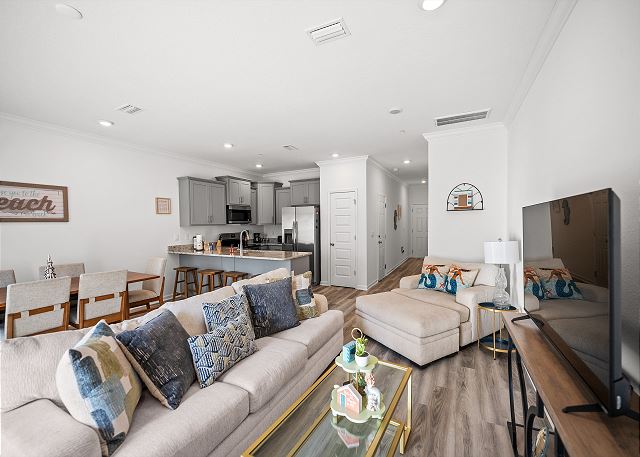 - Open-concept kitchen, dining, and living area perfect for entertaining
