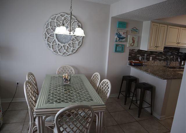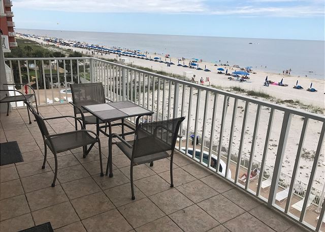 No chairs or umbrella with the condo so bring your own, buy some, or rent from the folks on the beach. Pool was clean and quiet. Beach was pretty quiet and more family oriented. Restaurants and such within 1-4 miles (long walk or short drive).