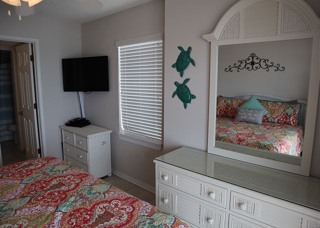 THIRD BEDROOM: Queen bed and bunk set with full bath