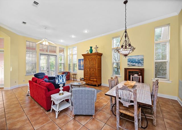 "The house was extremely clean. Updated decor an open and airy feel. Martinique is a very nice neighborhood with pretty grounds. The house was about an 8 minute walk to the beach and a 3 minute golf cart ride. The beach was beautiful and clean! We had a great stay at Sara’s Saving Grace!"
