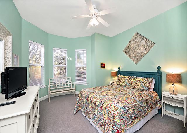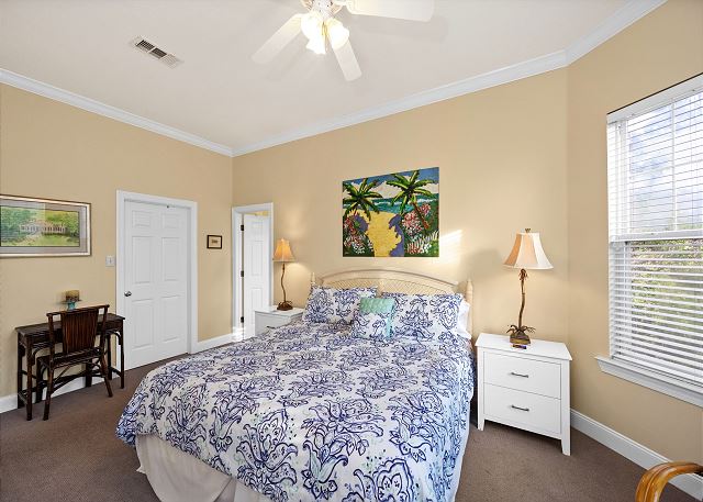FIRST FLOOR: Guest bedroom with queen bed and private bath
