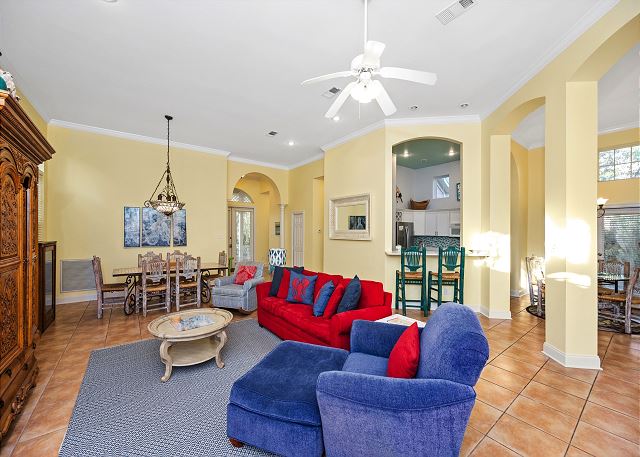 "The house was much more spacious and well-appointed than we expected. The kids loved the location right across from the pool. Only caveat is that we had to bring every little thing for the kitchen, etc. "