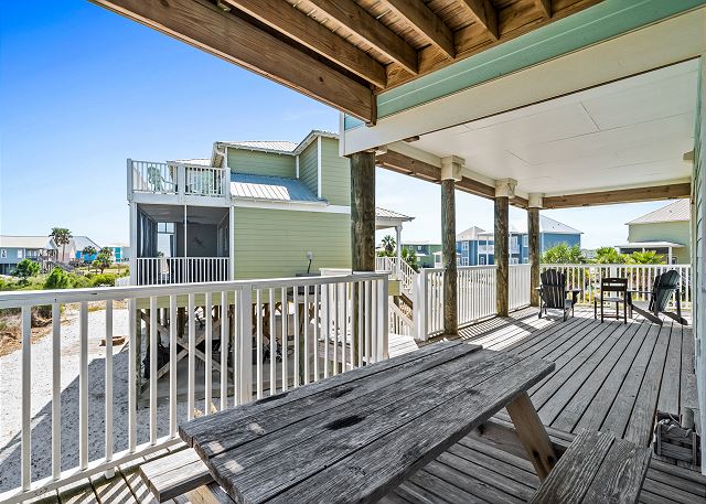 "Our family of 11 enjoyed our stay at Sea Turtle and the Bay to Breakers neighbor hood. The folks at Sunset Properties were great to work with. The house was as clean as any rental I stay in and we stay in quite a few. We were so thankful for this due to the current situation with Covid. The only suggestion is the carpets in the upstairs should be replaced as others have said. The location and the beaches were wonderful. We were lucky enough to have 3 firework displays on the beach! We loved the pier on the bay as many of us are fishermen. We keep our boat at at a wet slip at the marina and could hop in and go into the bay and gulf. Loved the layout of the house and the covered porches. All good!"