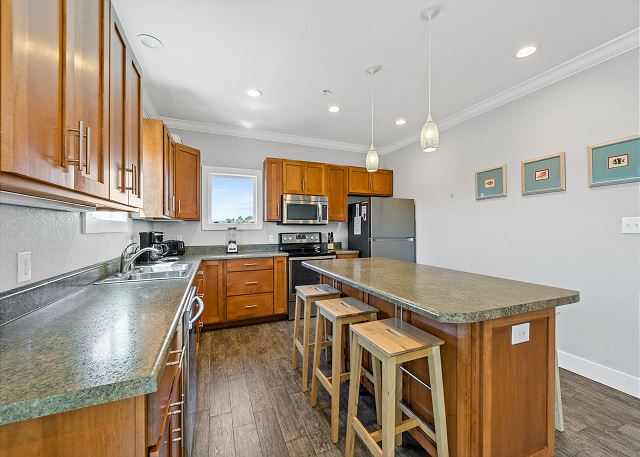 KITCHEN: Fully equipped with fridge (ice maker), oven, microwave, dishwasher, and quality cookware