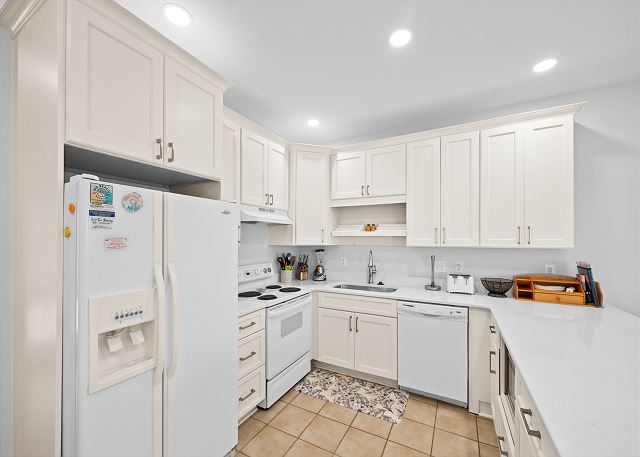 KITCHEN: Fully equipped with dishwasher, stove, oven, fridge, and all cookware needed for meal prep