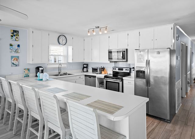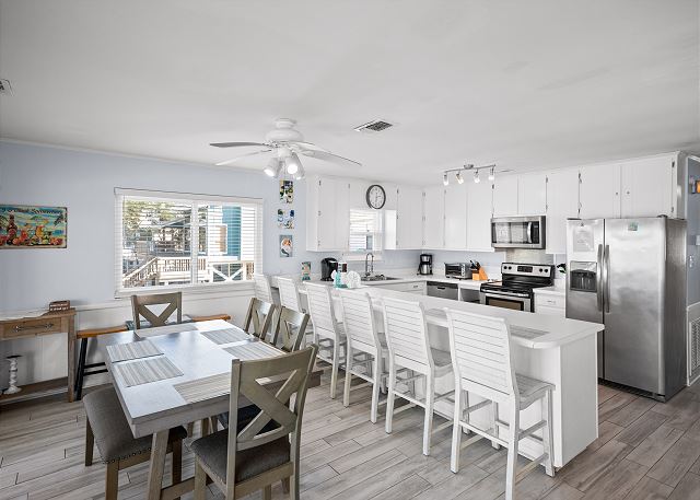 "This was the perfect property to stay at for a family of 8 with a young child. It’s well within walking distance to the beach, we were able to hang out on the dock over looking the lagoon, and it was an overall safe house for our daughter. The property came with games, a fully stocked kitchen, and a cozy space to be with family. I would recommend this property every time for a stay in gulf shores! "