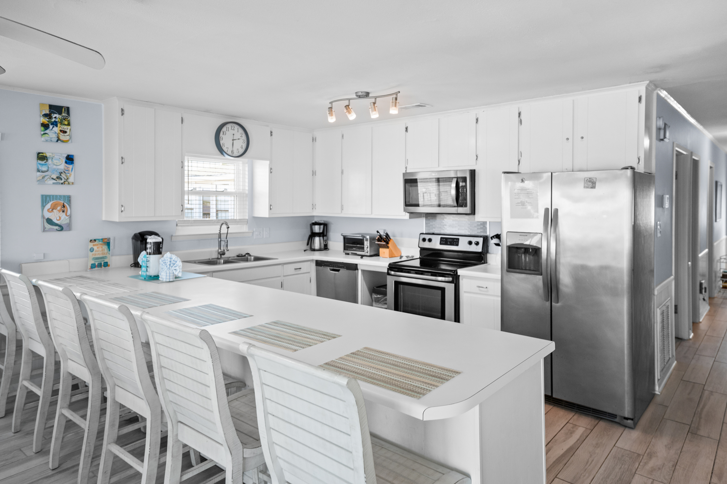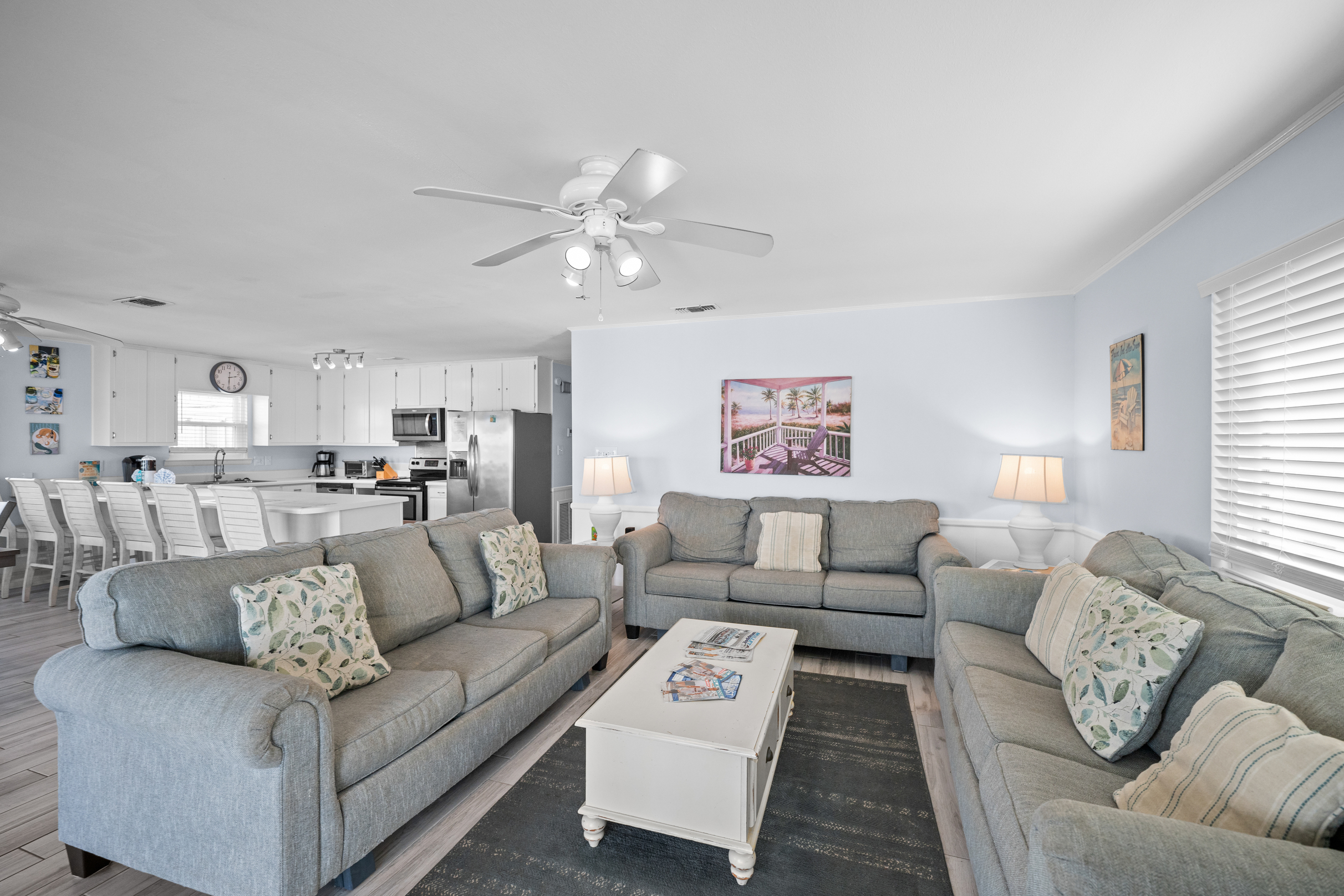Welcome to STARS ALIGN, a bright and inviting 3-bedroom, 2-bath lagoon-front home designed for families, groups, or multi-generational vacations. Sleeping up to 10, this home features flexible sleeping arrangements including twin bunk beds, queen and king beds, and a sleeper sofa. Relax on the deck overlooking the water, fish off the private pier, or enjoy indoor activities with a fully stocked kitchen, dining areas, and big-screen TV. The home is pet-friendly and offers the perfect combination of comfort, views, and fun for your next getaway.