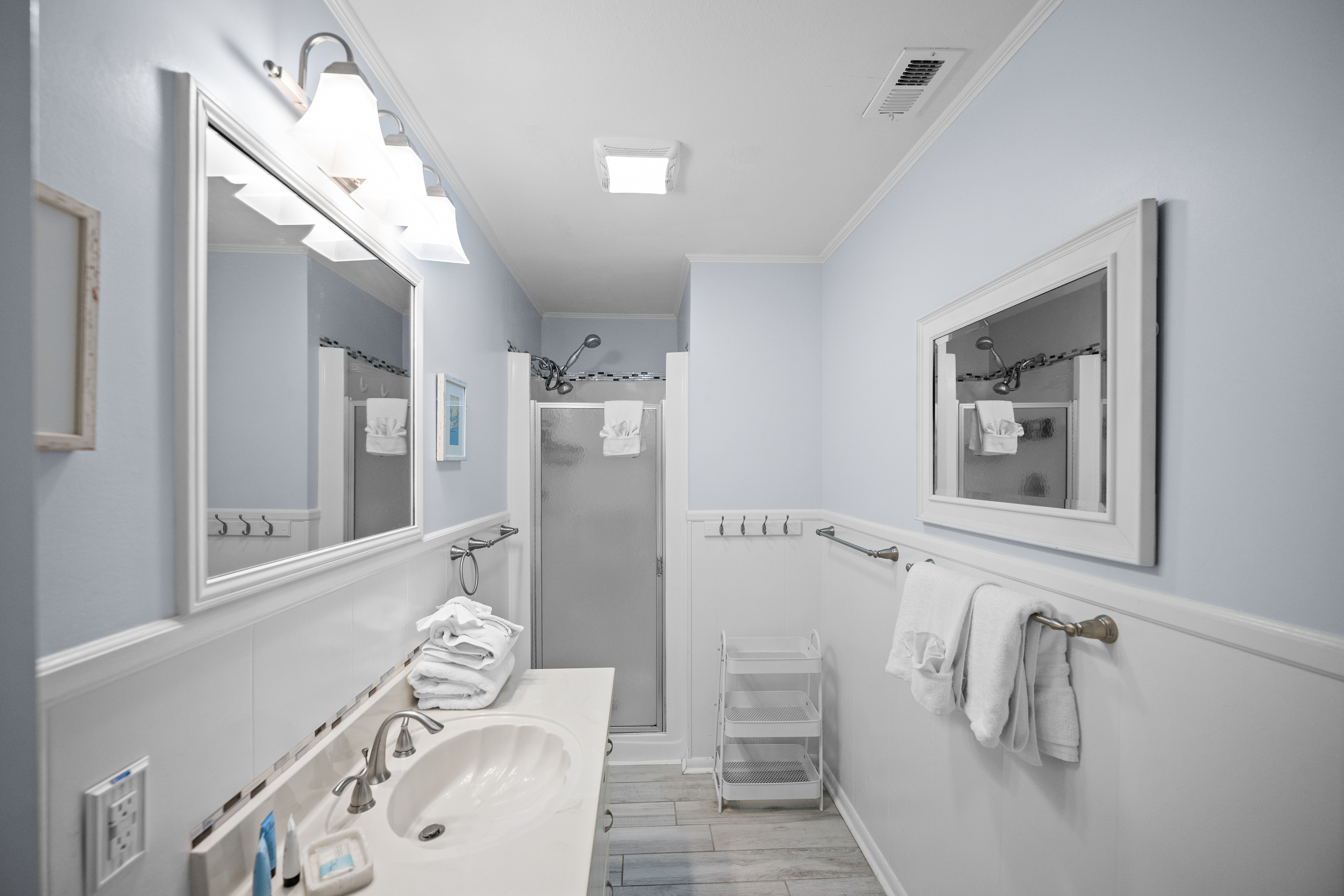 "We love the proximity to the beach. A quick walk to public access and another quick walk the other direction to a few shops and a restaurant. We loved the pier and.caught several species of fish off the end of it. The rental was spacious and Clea. "