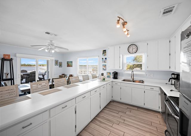 "Thank you so much for your review! We are so happy you were able to enjoy our water front home, Stars Align! The location is perfect out there between being walking distance to the beach but having direct access to water in the back yard for any water toys you may have like kayaks, paddle boards, etc. Please let us know when you are ready to come visit again! "