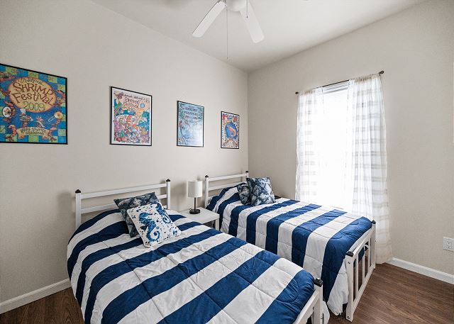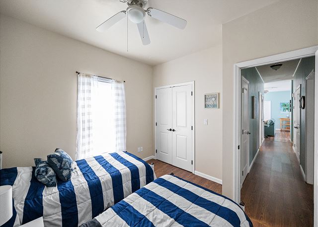 SECOND FLOOR: Two bedrooms with attached baths – one king, one two twin beds