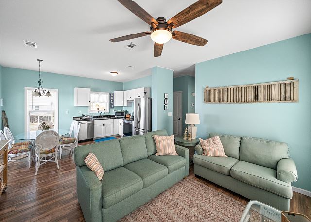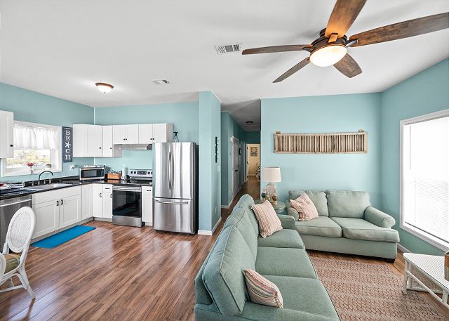 "Great place for our family to get together. It was the perfect size for the six of us. Beautiful sunsets and walking distance to the beach. Recommendations on the house would be to have ceiling fans in the bedrooms and living room and also the flooring wasn’t properly installed making it rough on your feet to walk on it. "