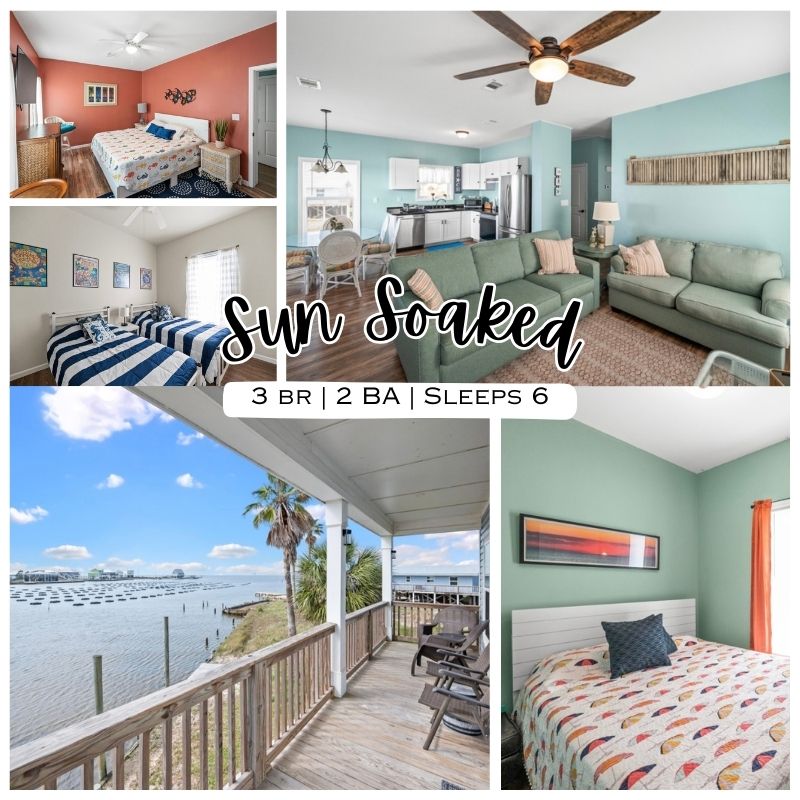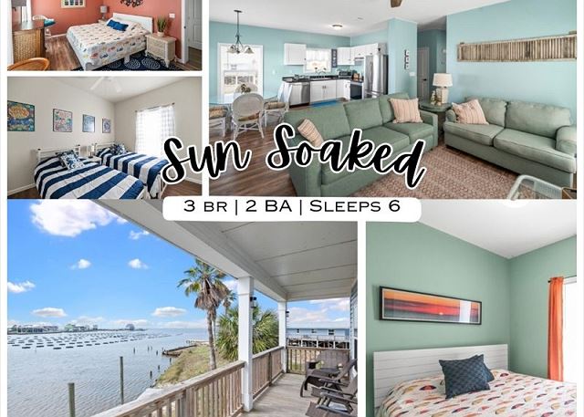 Welcome to SUN SOAKED, a newly renovated bayfront cottage perfect for families or groups. Sleep up to 6 guests with flexible bedroom options, enjoy the deck with scenic views, and prepare meals in the fully equipped kitchen. Located near historic Fort Morgan and the Gulf Shores Yacht Club, the area offers fishing, sightseeing cruises, jet skis, and some of the best local seafood—all just minutes away.